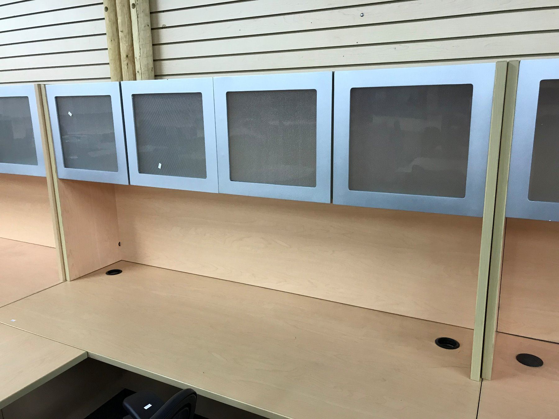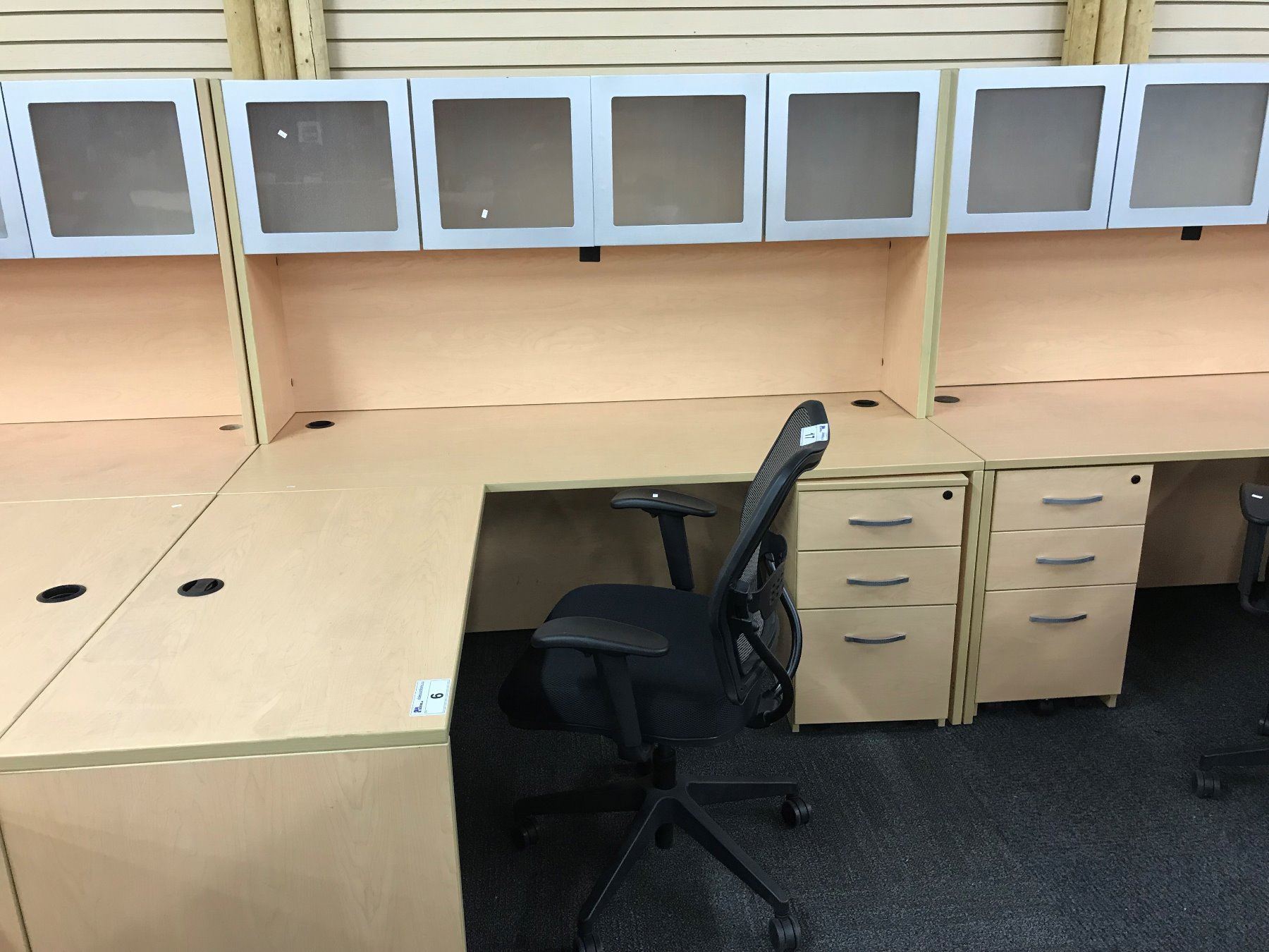 MAPLE 6X6' L-SHAPE COMPUTER DESK COMES WITH FROSTED GLASS FRONT OVERHEAD HUTCH AND 3 DRAWER MOBILE PEDESTAL