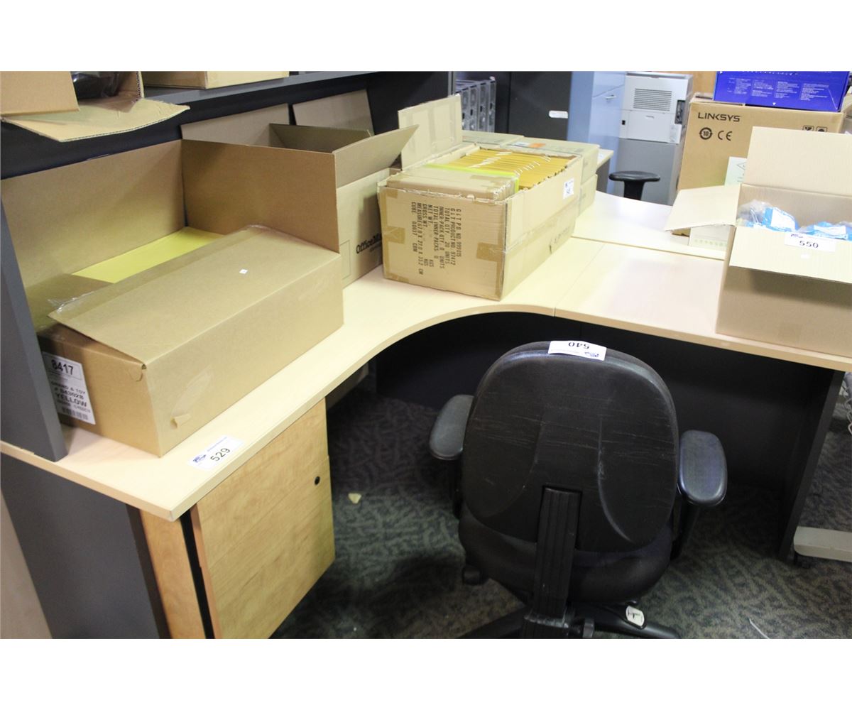 MAPLE AND GRAY 6' CORNER COMPUTER DESK WITH HUTCH