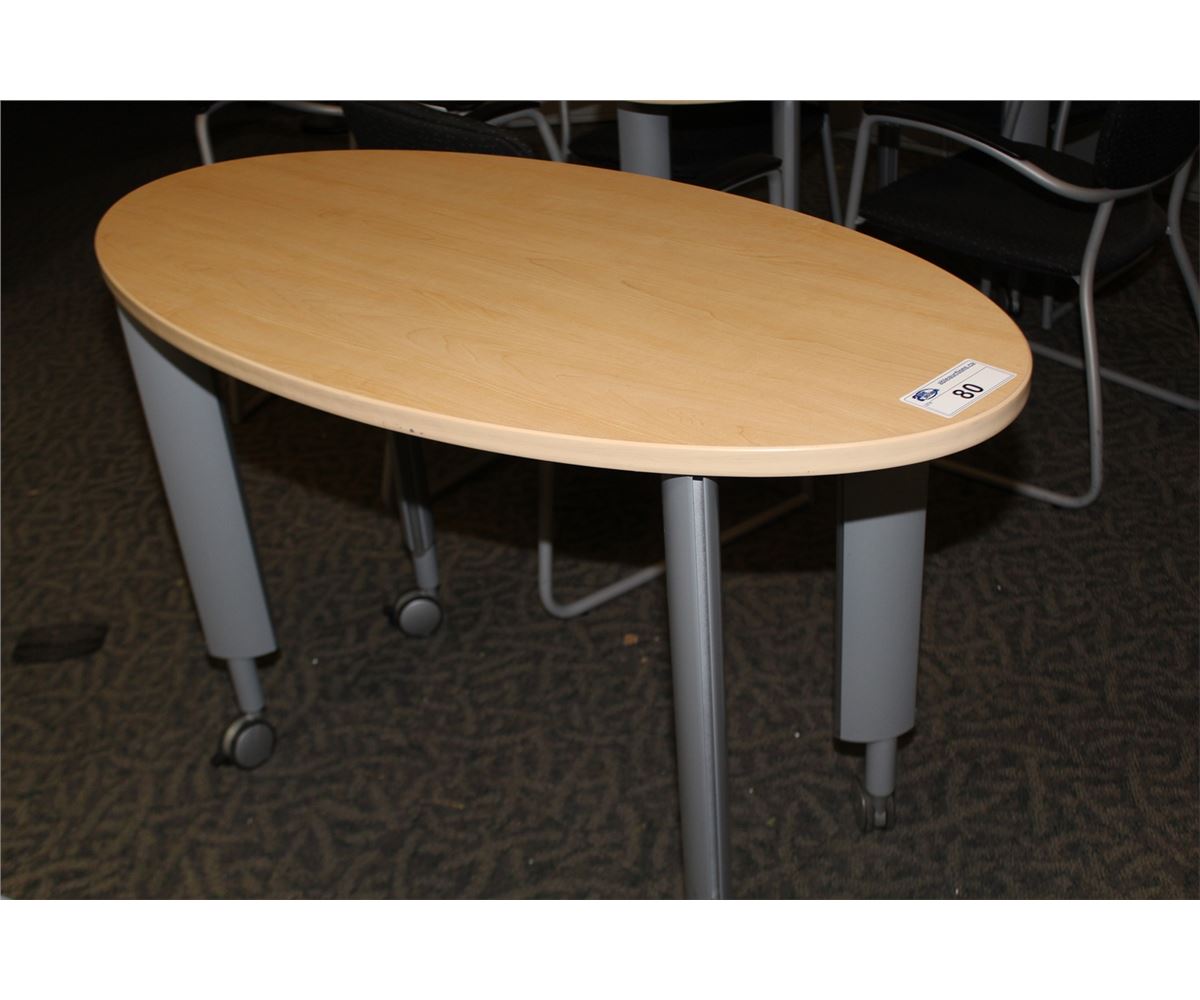 MAPLE AND GREY 42'' MOBILE OVAL TABLE