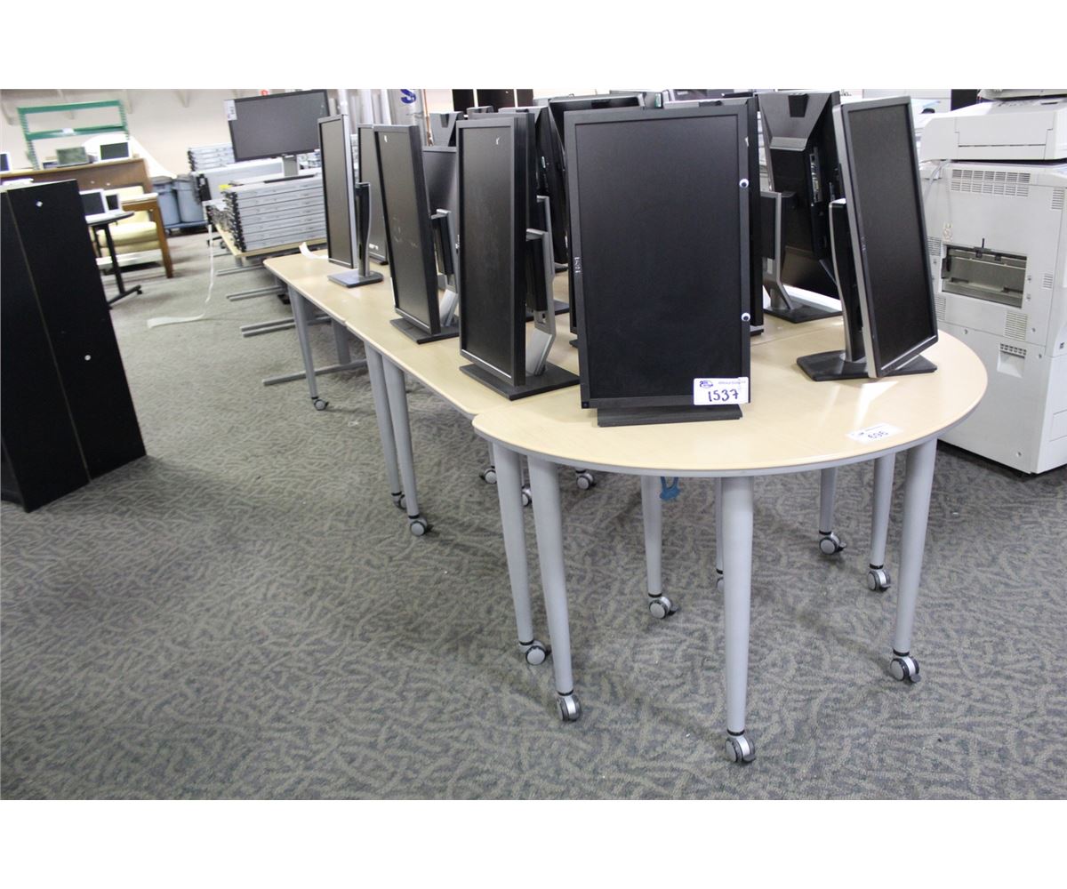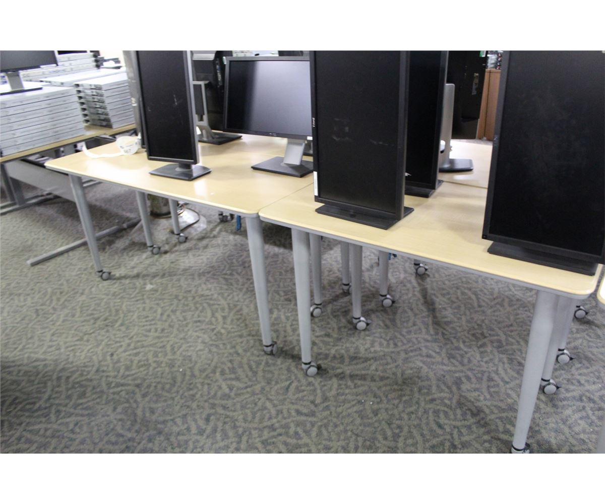 MAPLE AND GREY 7 PIECE MODULAR, MOBILE CONFERENCE TABLE