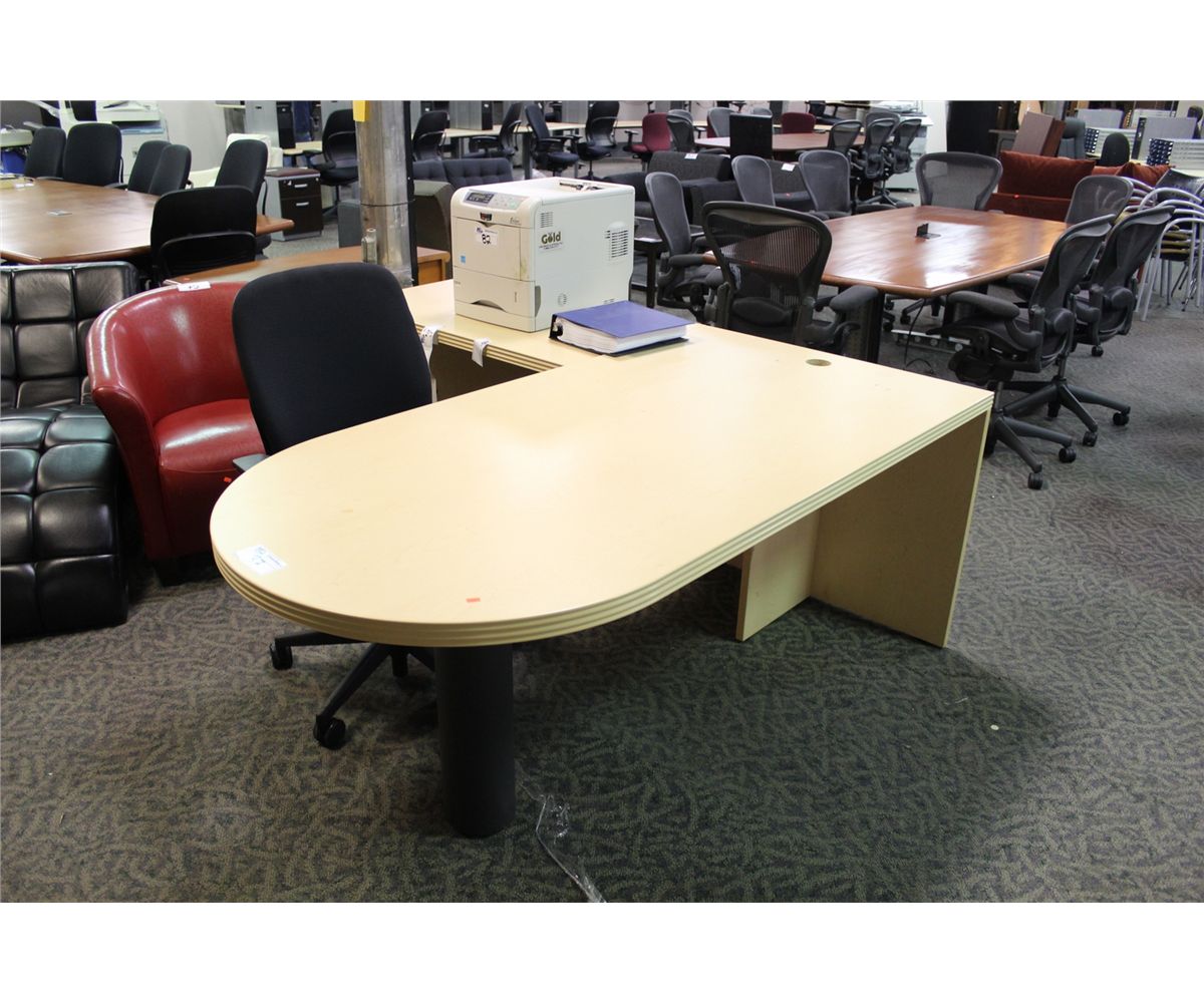 MAPLE BEVELLED EDGE L-SHAPE EXECUTIVE DESK