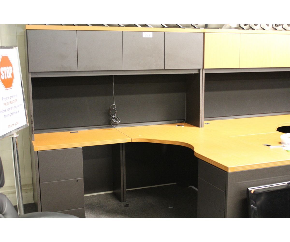 MAPLE & BLACK 6X6 CORNER WORK STATION WITH HUTCH
