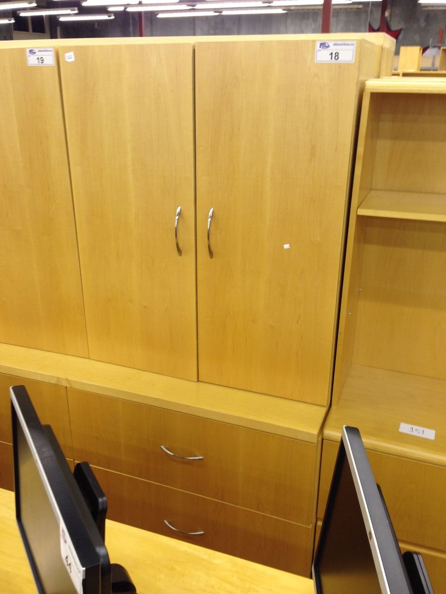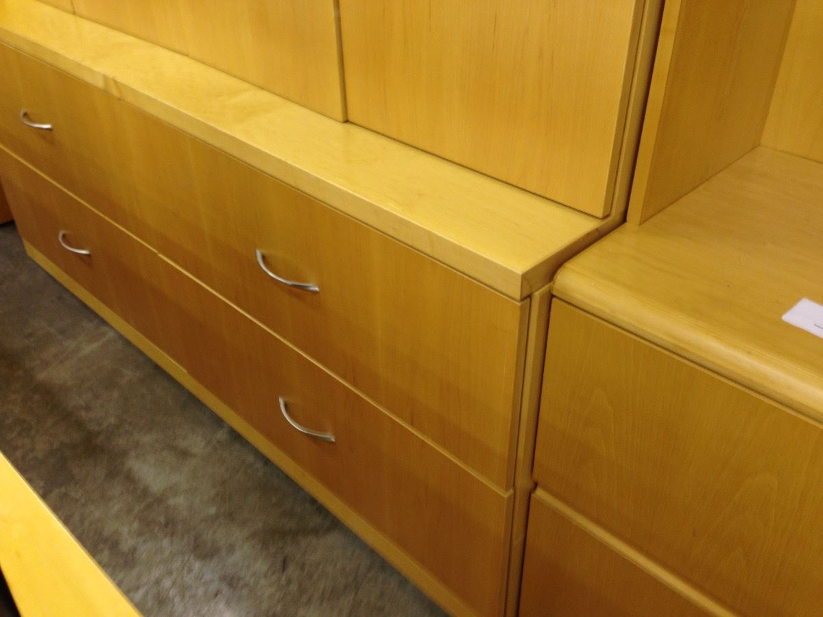 MAPLE CABINET WITH 2 DRW LATERAL FILE AND OVERHEAD STORAGE