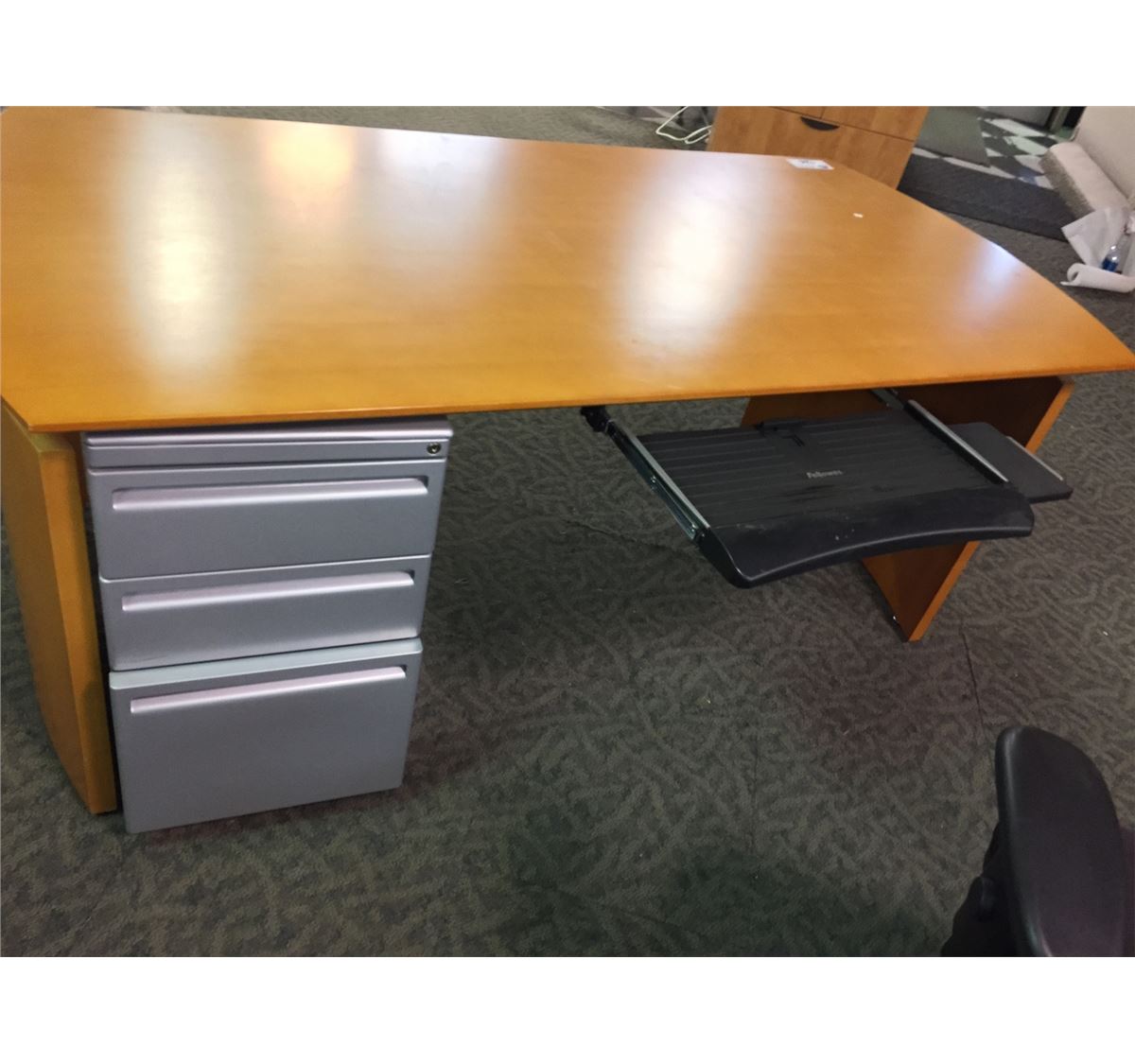MAPLE CUSTOM 6' EXECUTIVE DESK W/ 3 DRAWER MOBILE PEDESTAL AND KEYBOARD TRAY