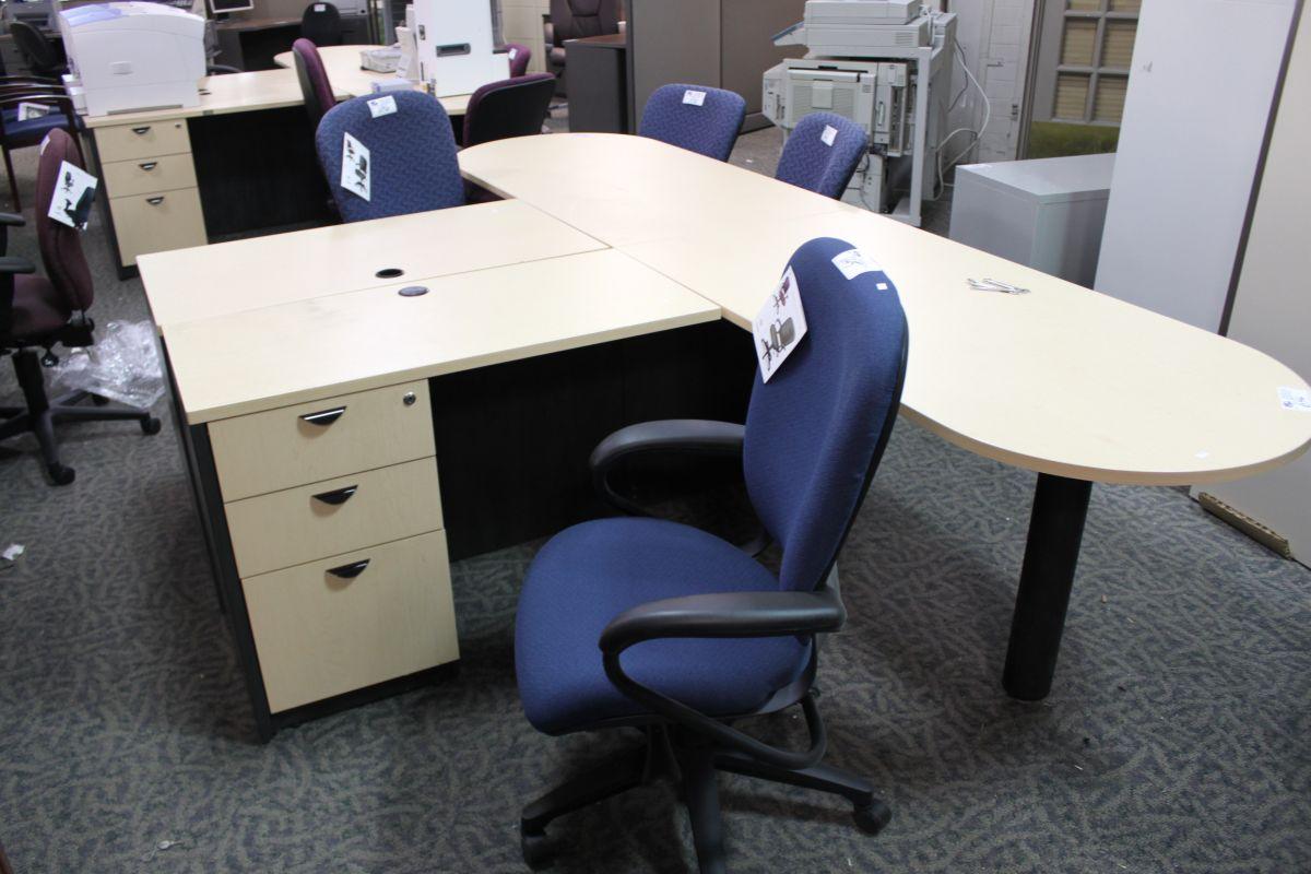 MAPLE L-SHAPE BULLET TOP EXECUTIVE DESK WITH LEFT HAND RETURN