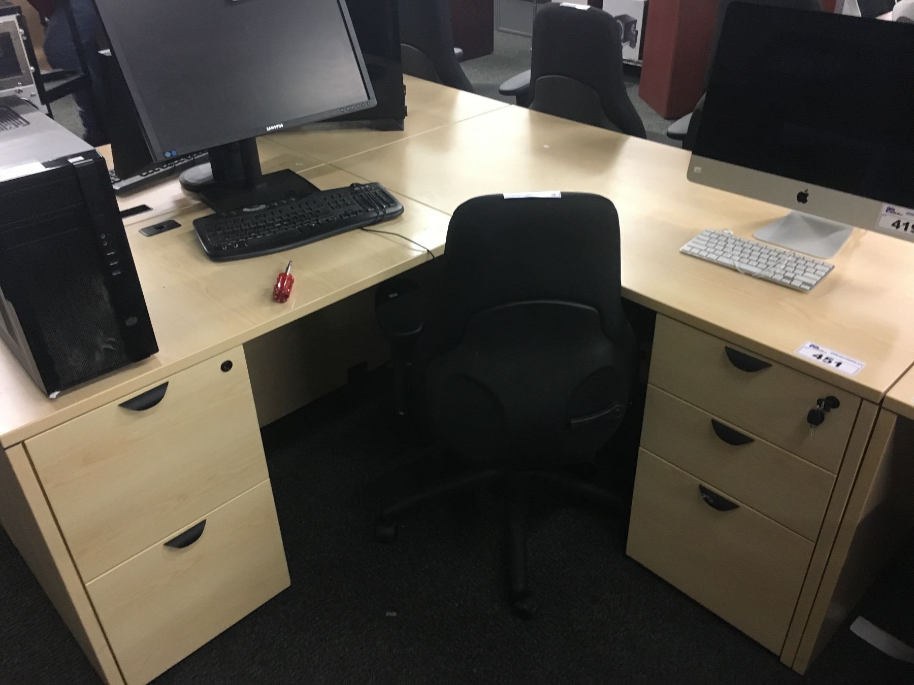 MAPLE L-SHAPE CORNER 4 DRAWER COMPUTER DESK, 71'' X 60'' LH