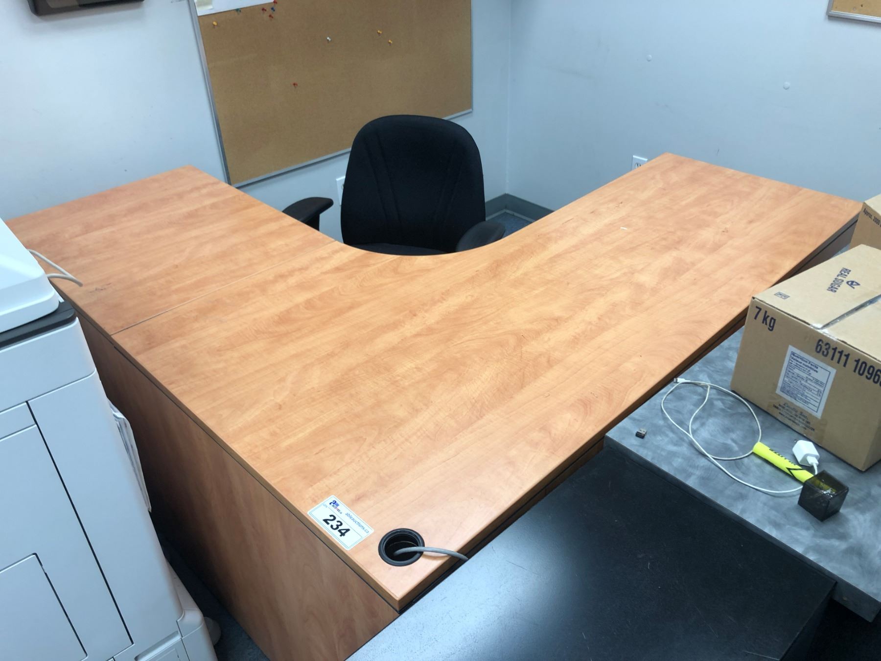 MAPLE L-SHAPED OFFICE DESK WITH OFFICE CHAIR