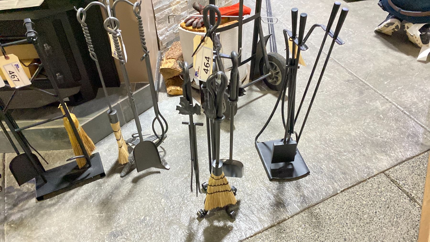 MAPLE LEAF GRAPHITE COLOR CAST IRON FIREPLACE TOOL SET RETAILS $499