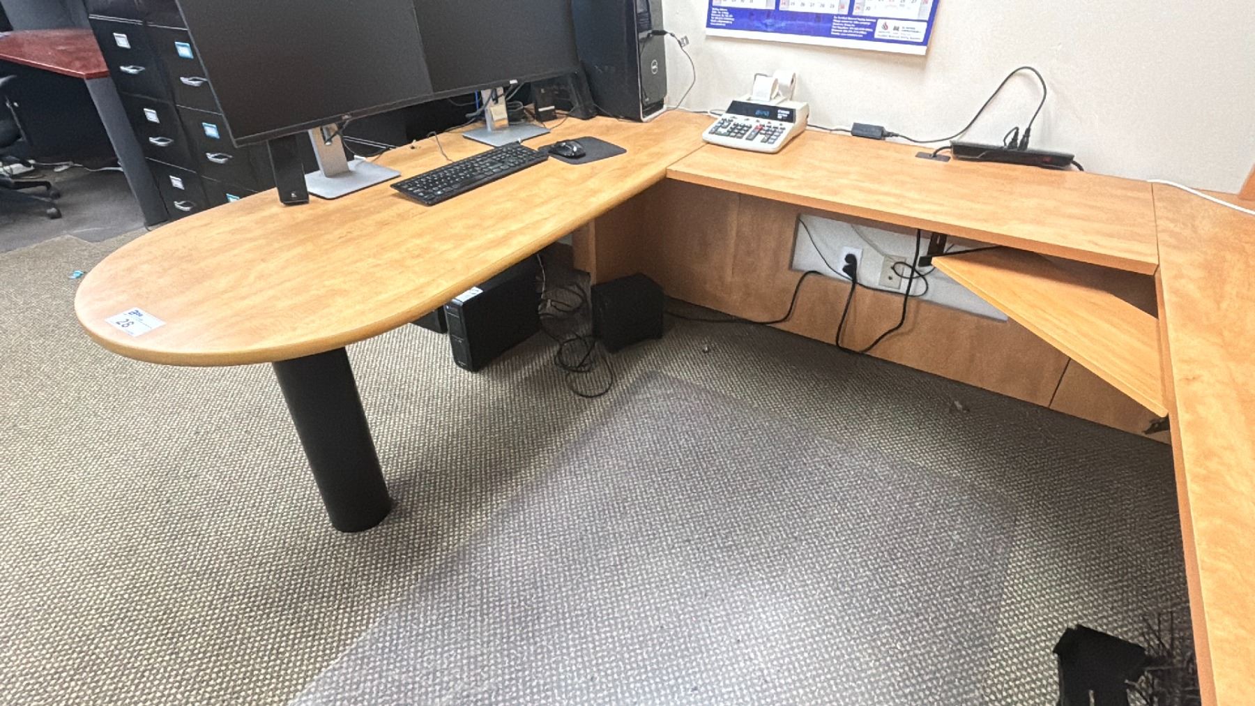 MAPLE U-SHAPED EXECUTIVE DESK WITH HUTCH AND MESH BACK CHAIR