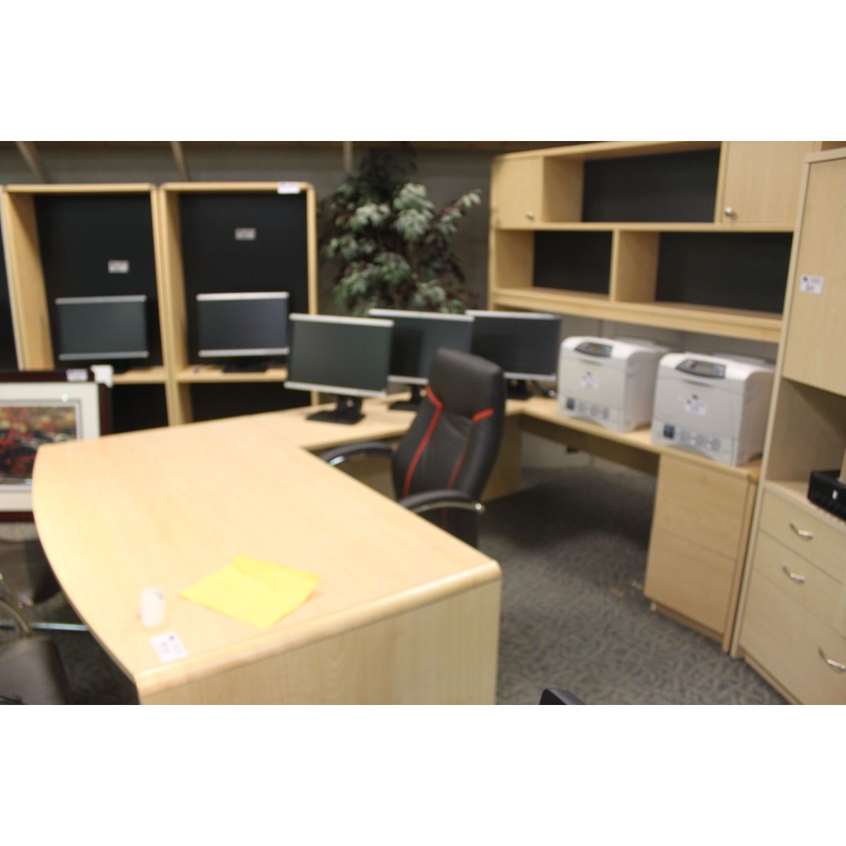 MAPLE U-SHAPED EXECUTIVE DESK WITH HUTCH