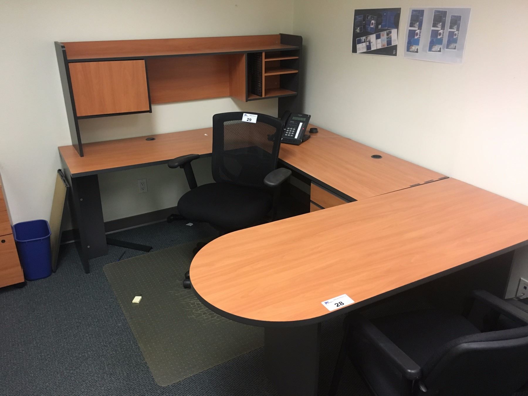 MAPLE U-SHAPED OFFICE SUITE WITH MAPLE 2 DRW. LATERAL FILE CABINET AND FILE PEDESTAL