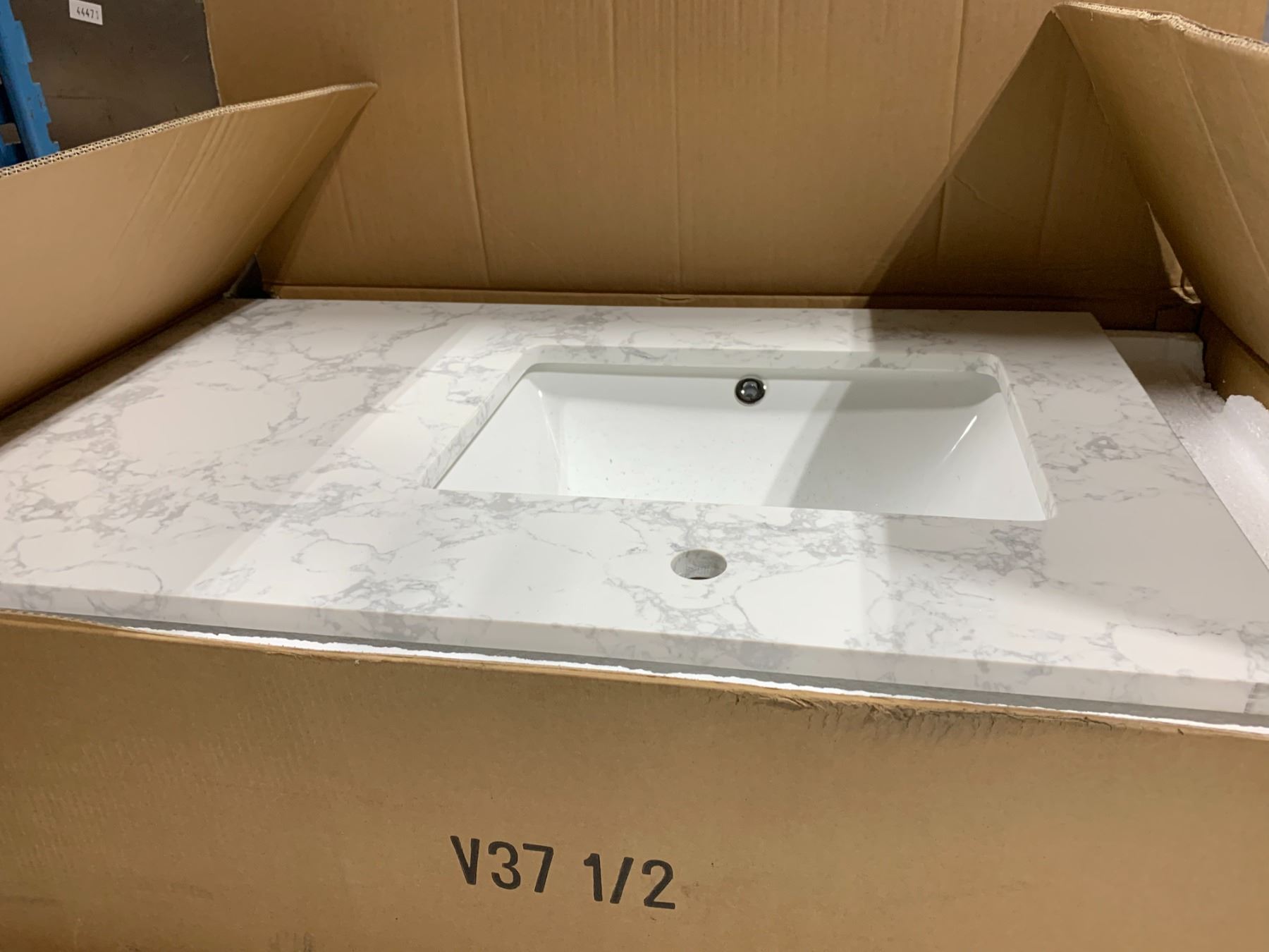 MARBLE BATHROOM VANITY COUNTERTOP (V37 1/2L) 37.5" X 22.5" LEFT HAND SINK WITH PORCELAIN SINK