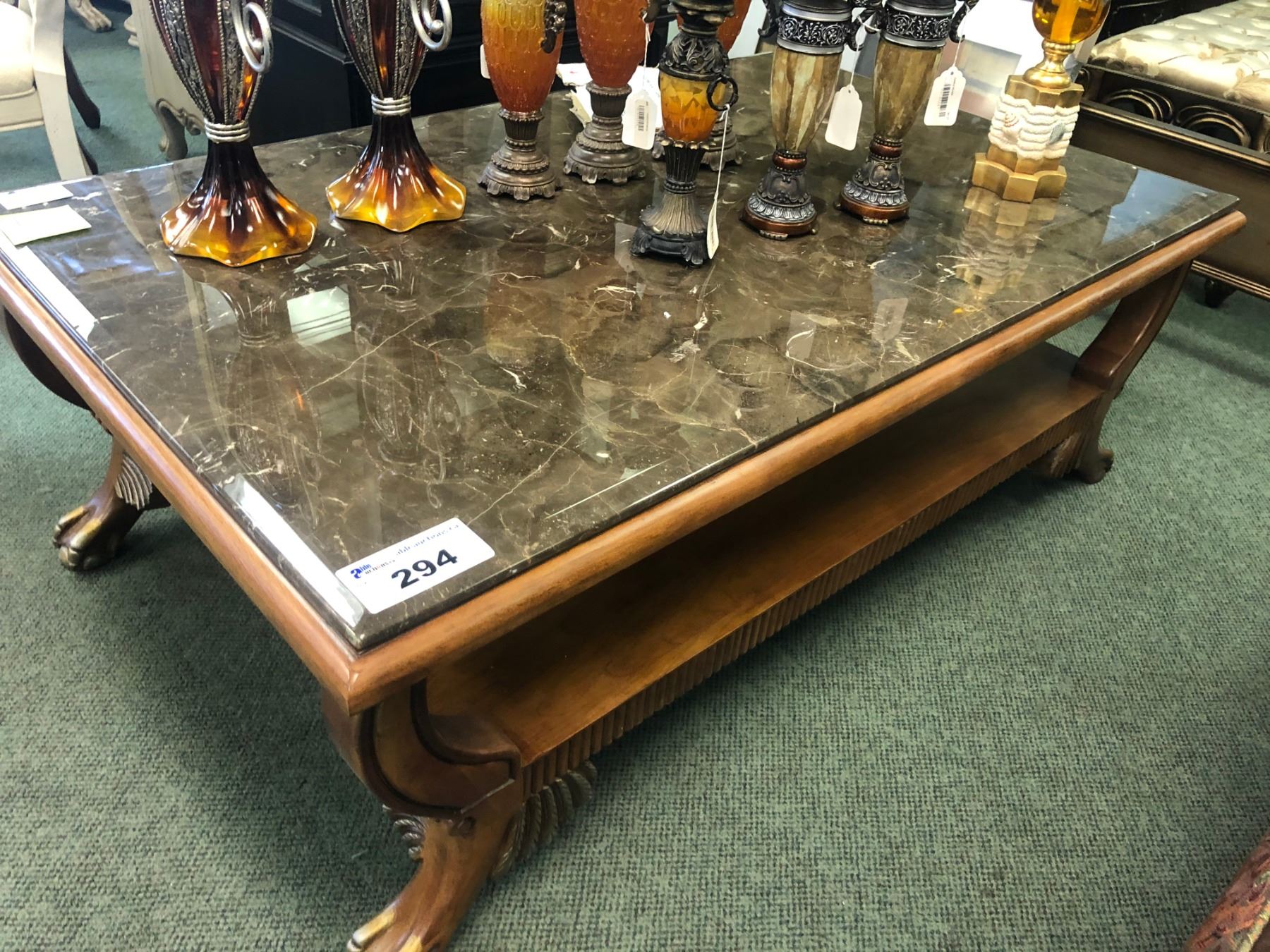 MARBLE TOP COFFEE AND END TABLE SET. RETAIL $2,899.00