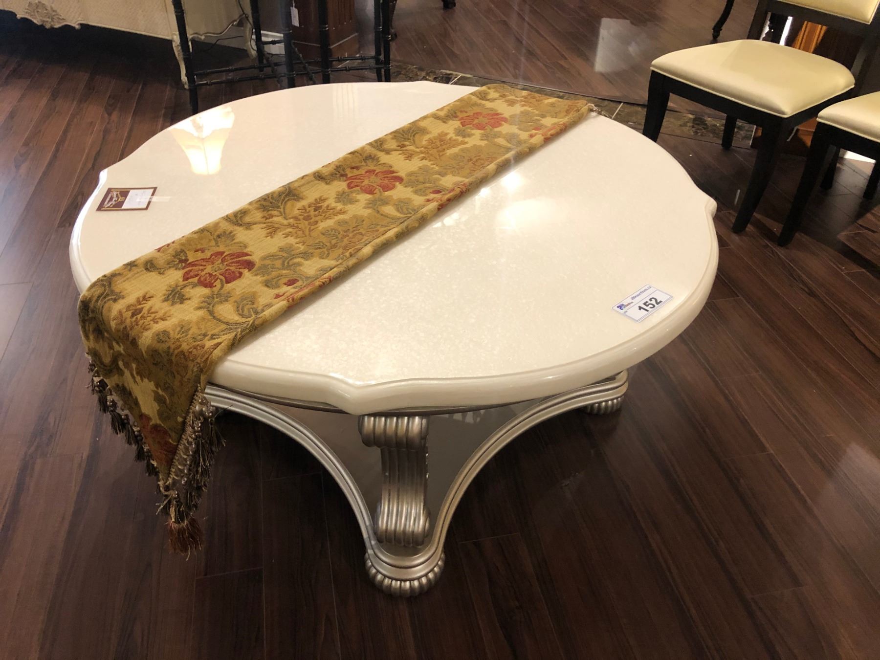 MARBLE TOP COFFEE TABLE WITH TABLE RUNNER. RETAIL $2,450.00