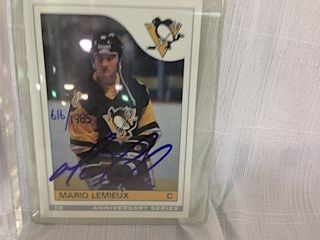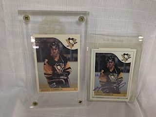 MARIO LEMIEUX PITTSBURGH PENGUIN ROOKIE CARD & MARIO LEMIEUX AUTOGRAPHED LIMITED EDITION ROOKIE ANNIVERSARY CARD 616/1985