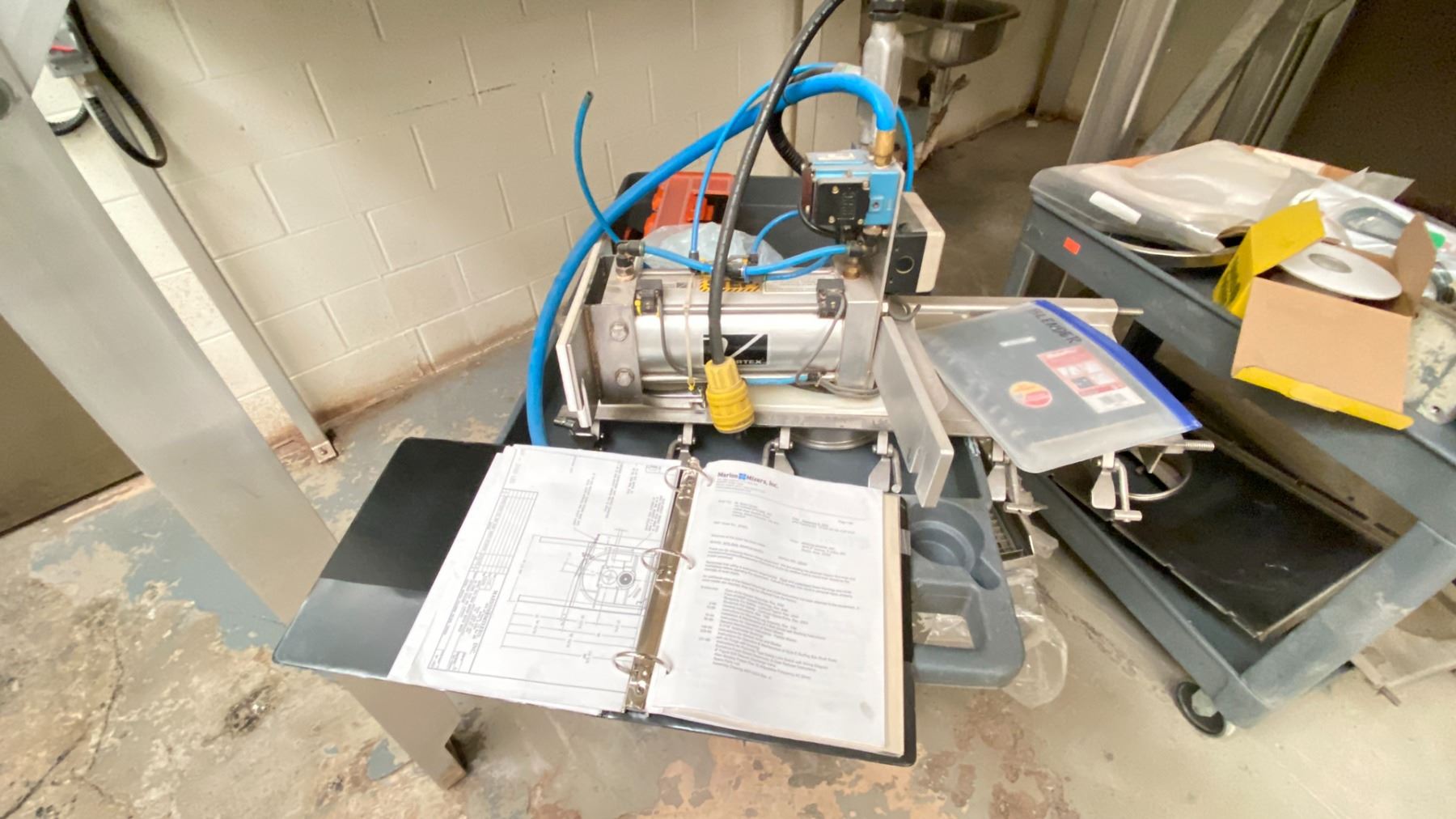 MARION PADDLE BLENDER/MIXER MODEL SPS-3648. 30 CU FT CAPACITY. 36"X48" BIN SIZE. EXTRA TOOLING AND PARTS WITH CART INCLUDED. OVERALL DIMENSION WITH LANDING DECKS AND LADDER IS 14'6"X13'6"