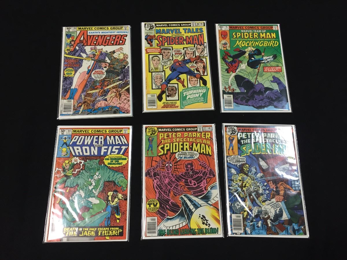 MARVEL BRONZE KEYS LOT OF 8 (1970'S-80'S) INCLUDES AVENGERS #195 1ST BRIEF TASK MASTER, HOWARD THE DUCK #13- 1ST FULL KISS MT #98&99-GWEN STEACY/GOBLIN DEATH REPRINTS, MT-U #95 - 1ST MOCKING BIRD, POWER MAN #66 - 2ND SABRE TOOTH & SPECTACULAR #27 & 28 1ST MILLER DD HIGH MID TO HIGH GRADE AVG
