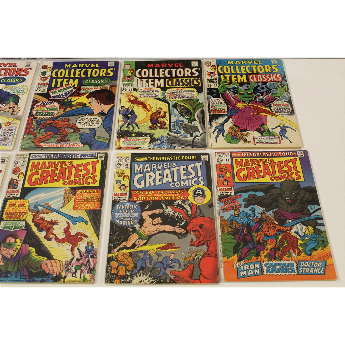 MARVEL COLLECTOR'S ITEM CLASSICS/GREATEST COMICS & SUPER-HEROES RUNS (1967-79) LARGE SILVER & BRONZEAGE RUNS OF COLLECTORS/ GREATEST (62 ISSUES BETWEEN #7-81) & MARVEL SUPER-HEROES (41 ISSUES BETWEEN #16-75) TOTAL OF 103 BOOKS, NO DUPLICATES WITH 20 BEING SQUAREBOUND GIANTS! MIXED GRADES WITH MANY SHARP NM RANGE COPIES, LOTS OFGUIDE VALUE HERE, CHOICE RUNS!