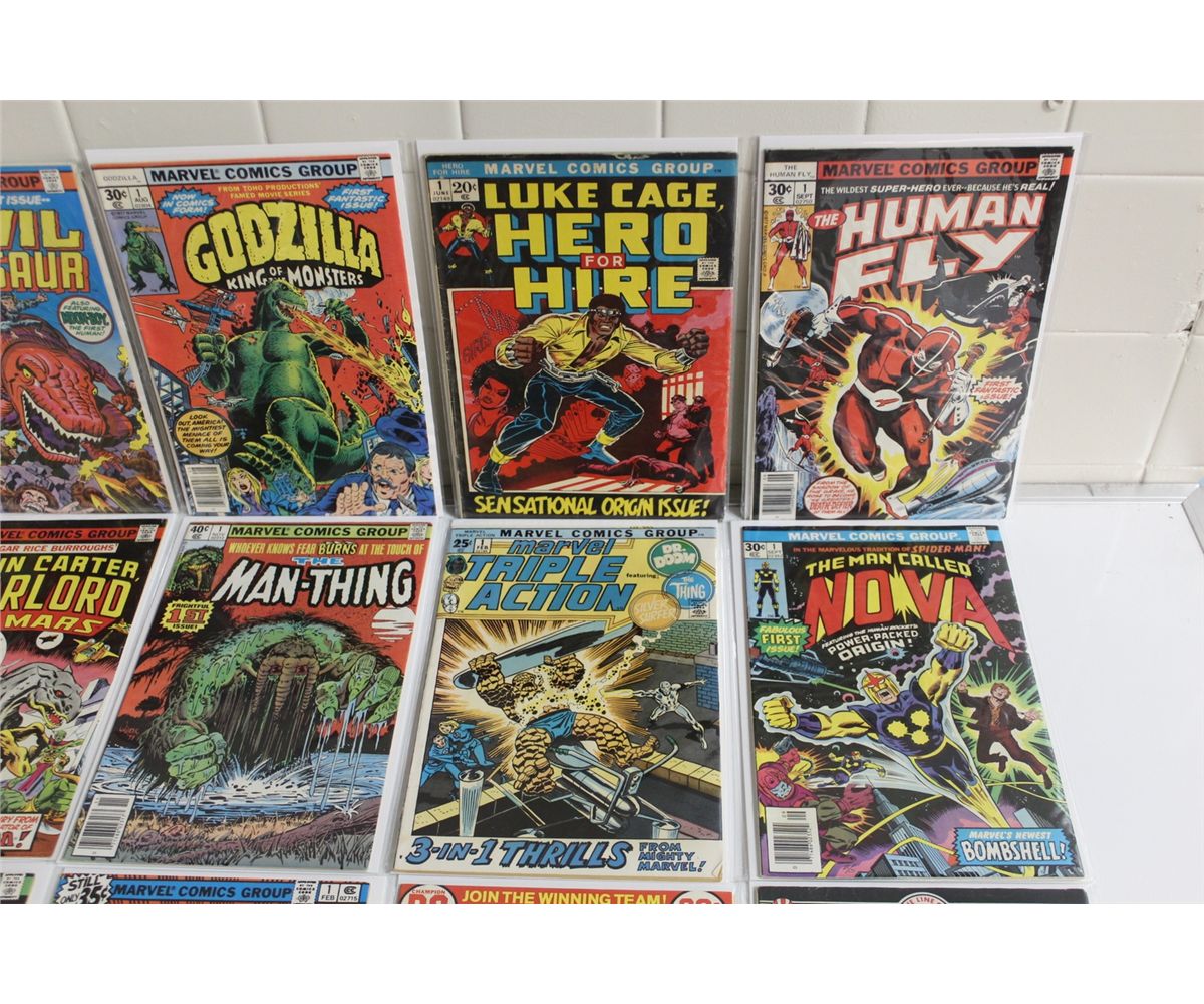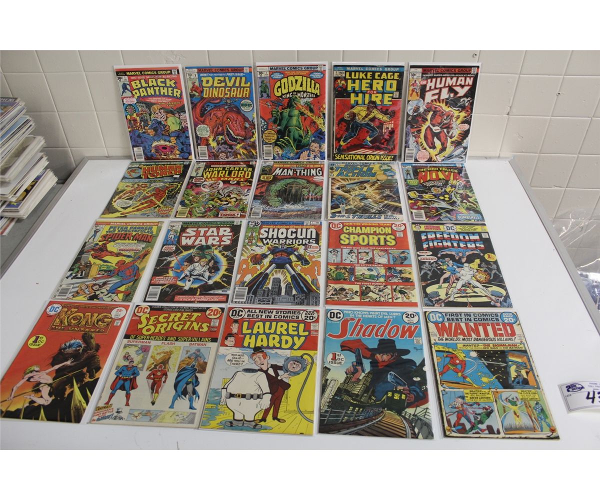 MARVEL & DC BRONZE AGE #1'S LARGE LOT. INCLUDES HERO FOR HIRE, SECRET ORIGINS, SPECTACULAR SPIDER-MAN, STAR WARS, ETC. 20 ALL DIFFERENT #1'S TOTAL. MIXED GRADES