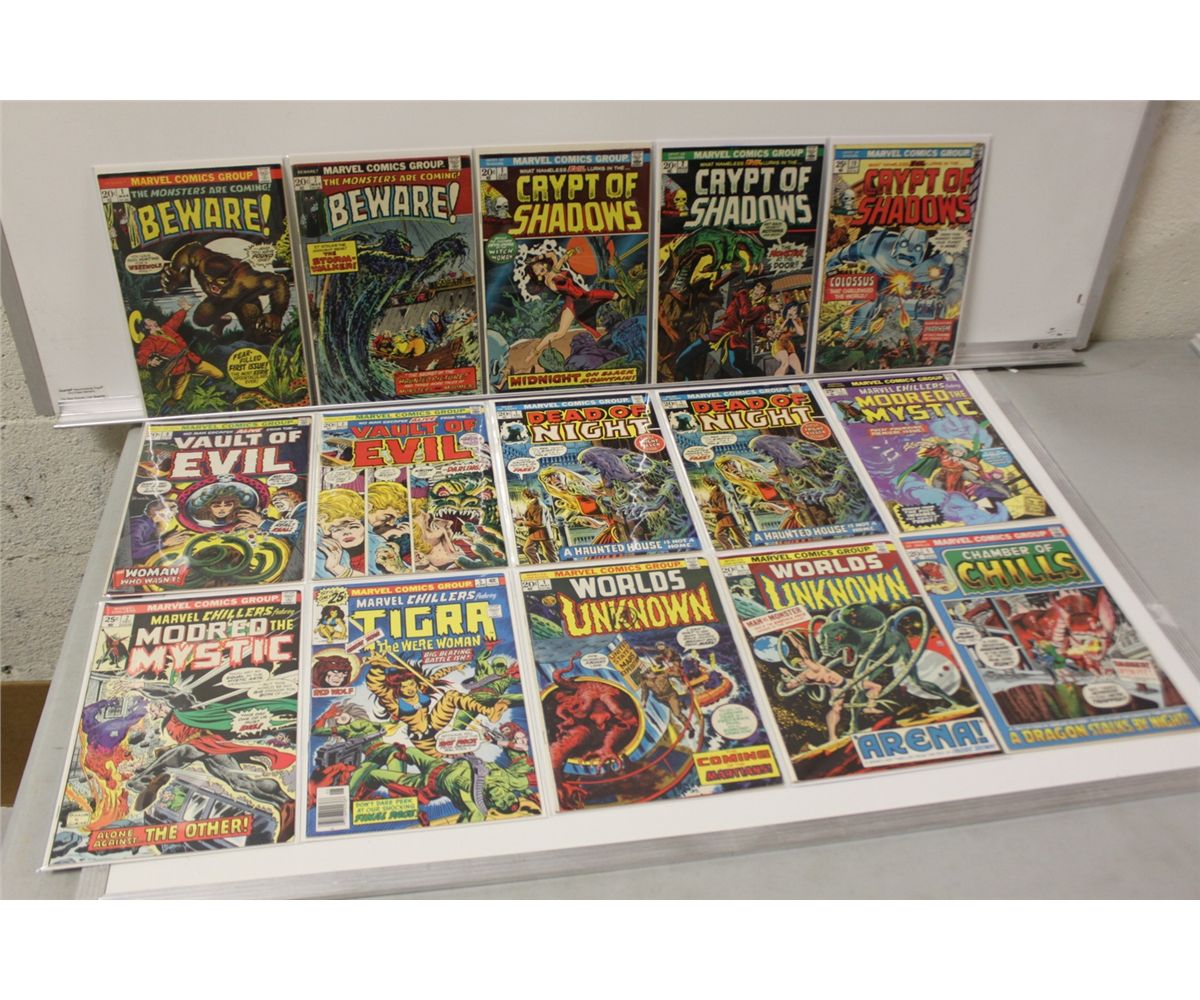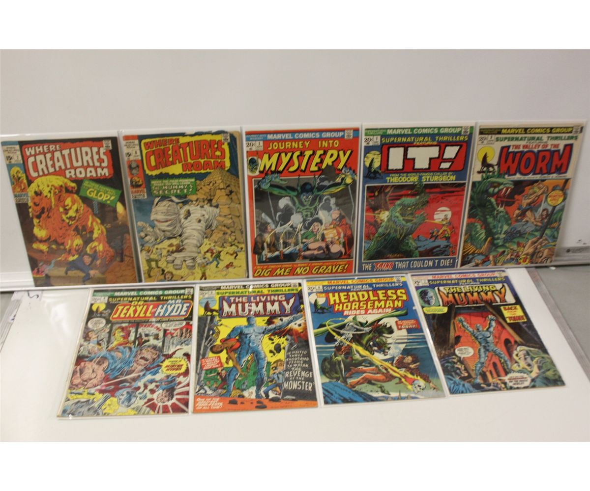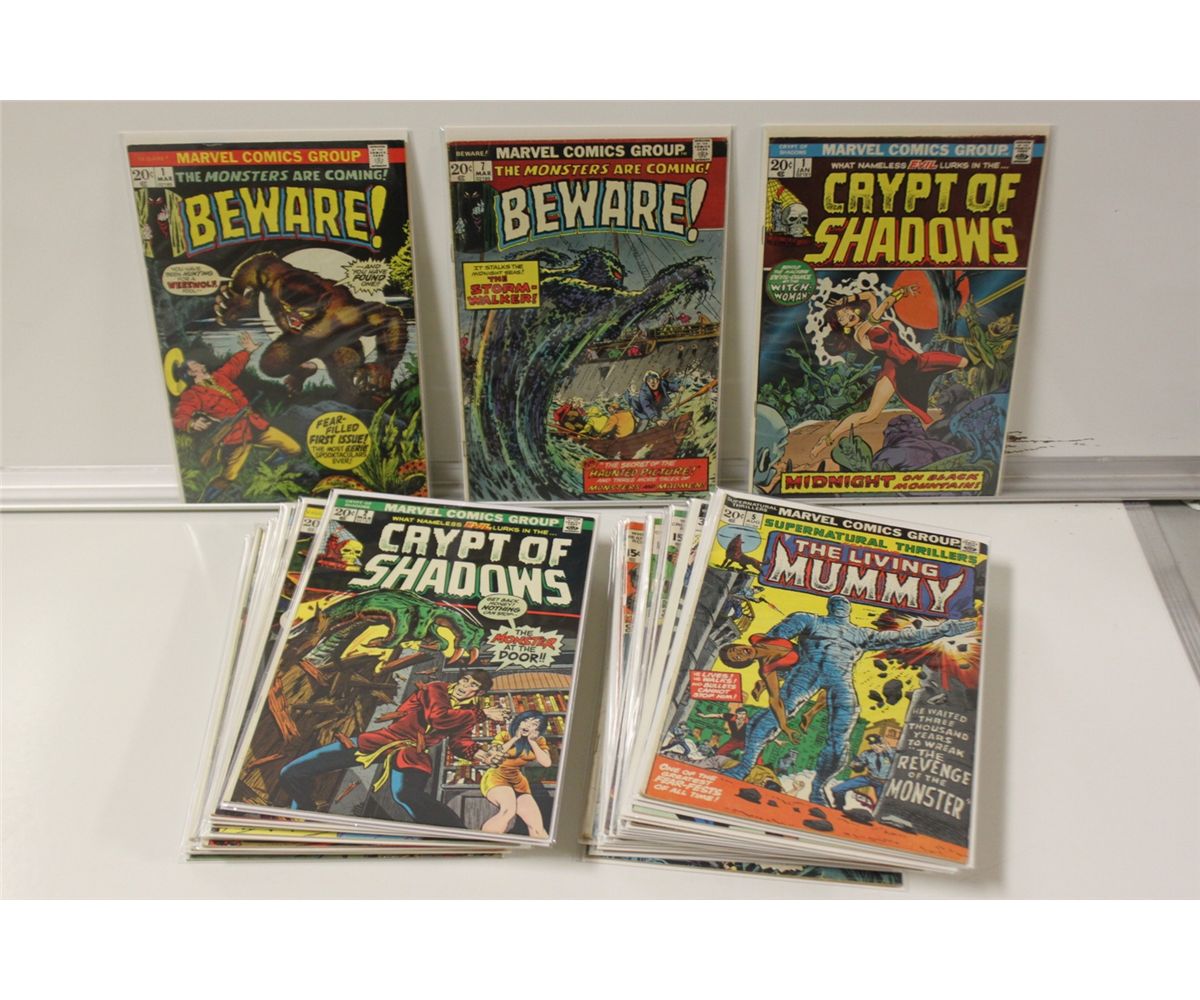 MARVEL HORROR BIG MIXED BRONZE LOT.  37 BOOKS, INCLUDES 11 #1'S & SUPERNATURAL THRILLERS #5- 1ST LIVING MUMMY.  MIXED GRADES, MANY SHARP COPIES.