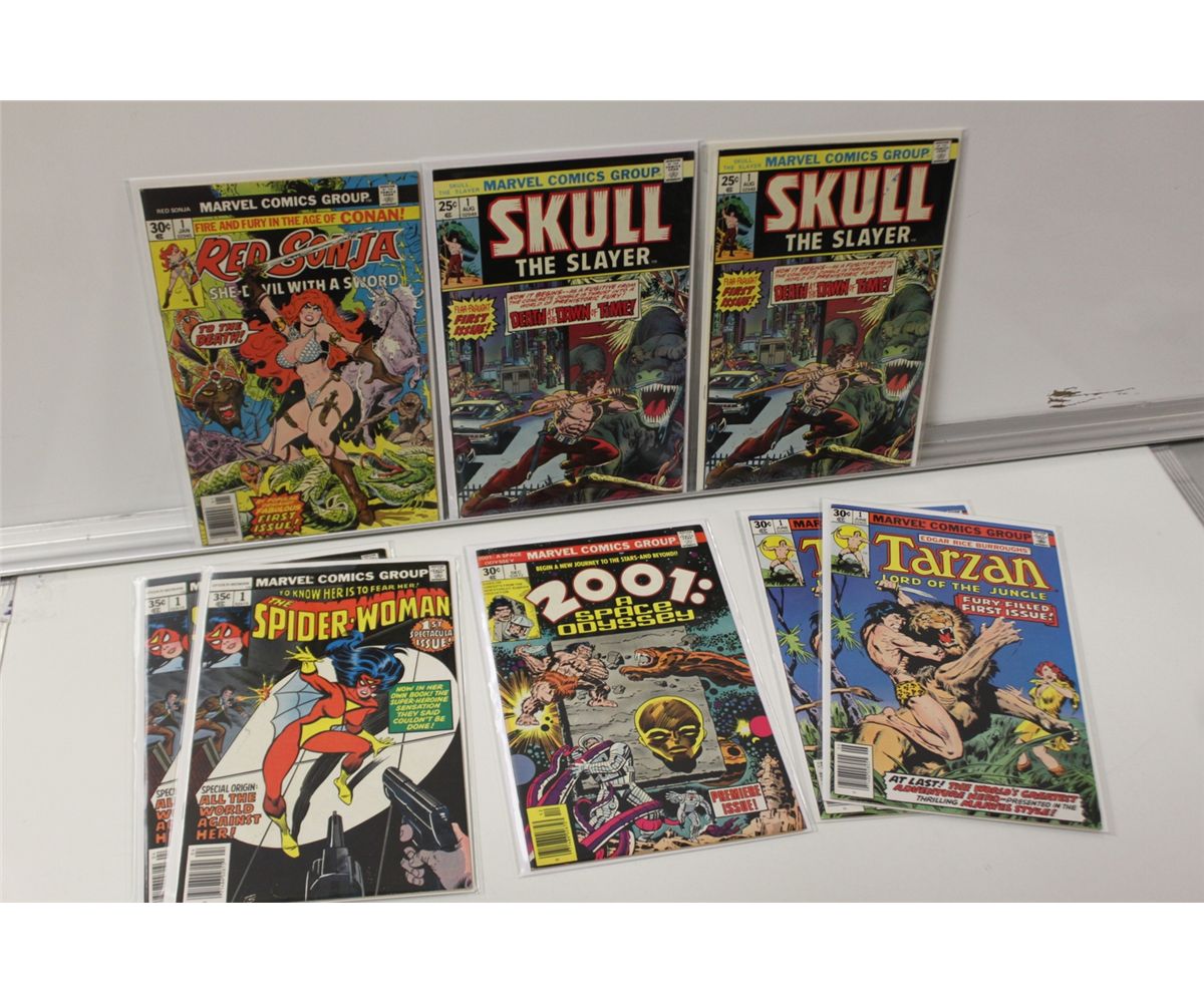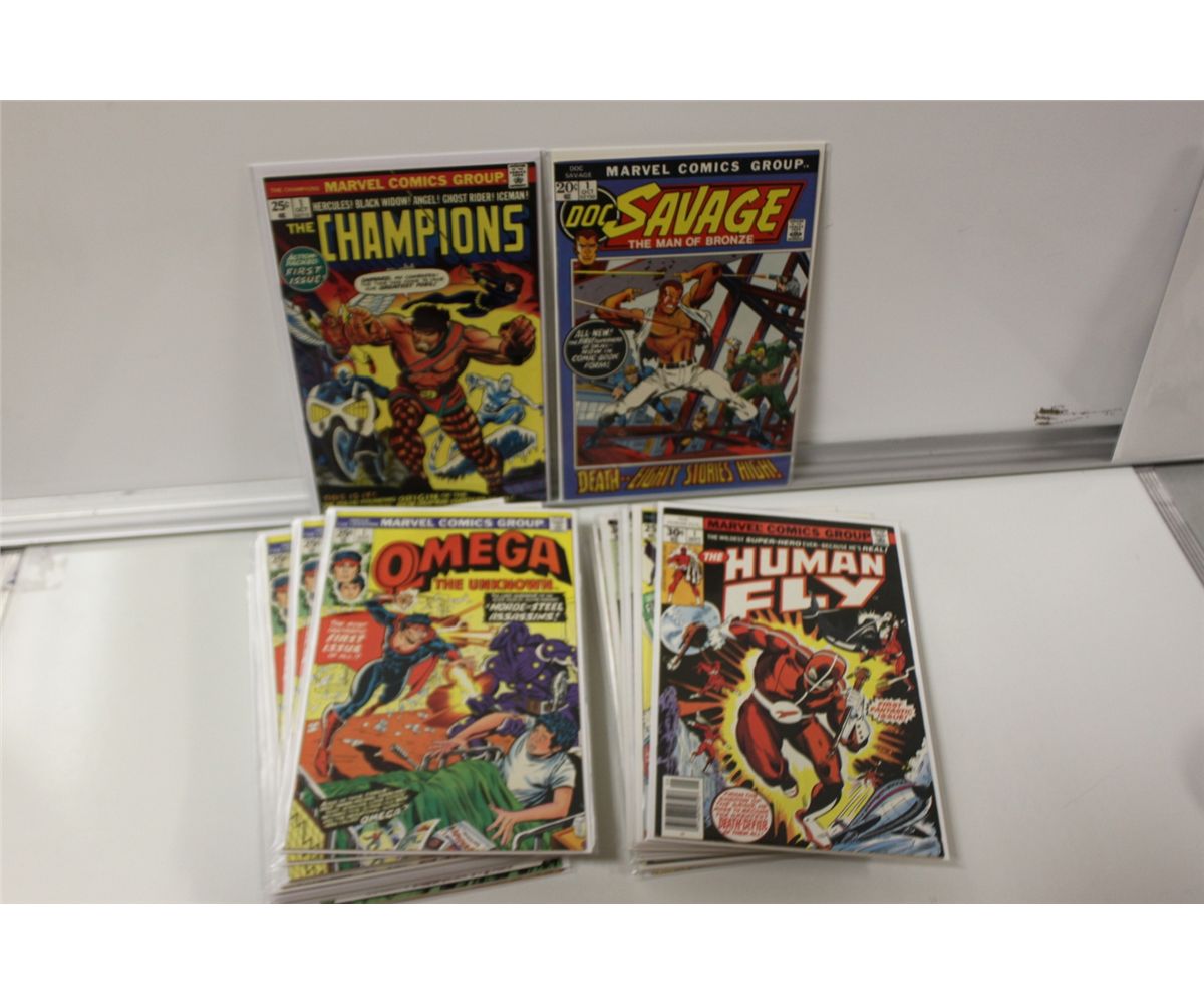 MARVEL LARGE BRONZE LOT OF HIGH GRADE #1'S. GORGEOUS, RAZOR SHARP, GLOSSY & SUPPLE COPIES.  27 TOTAL, ALL 1970'S. INCLUDES: MARVEL SPOTLIGHT #1, CHAMPIONS #1, DOC SAVAGE #1, TOO MANY TO MENTION, SOME DUPLICATES.  2013 OVERSTREET TOP END GUIDE VALUE OVER $650.