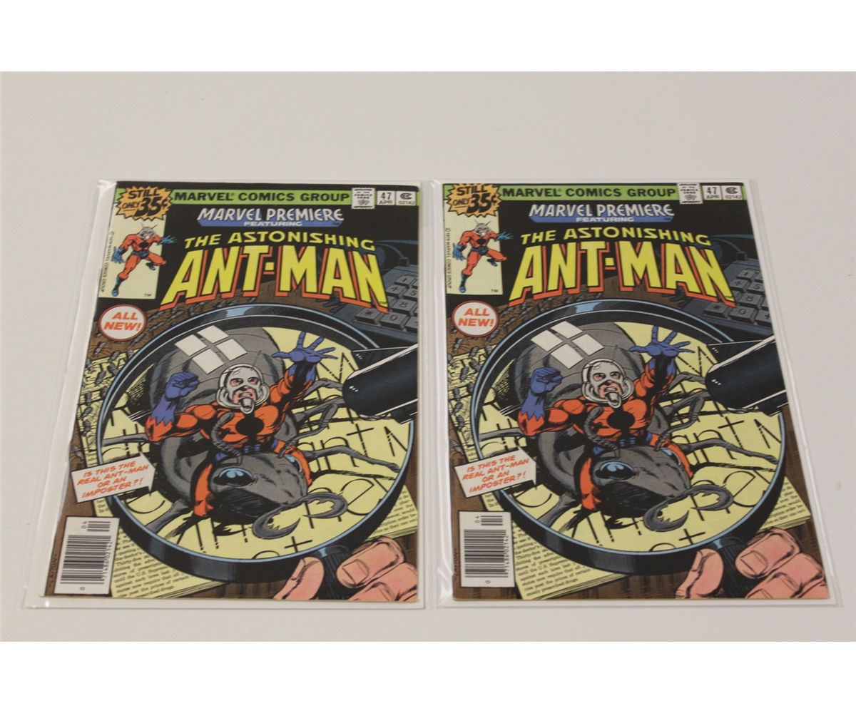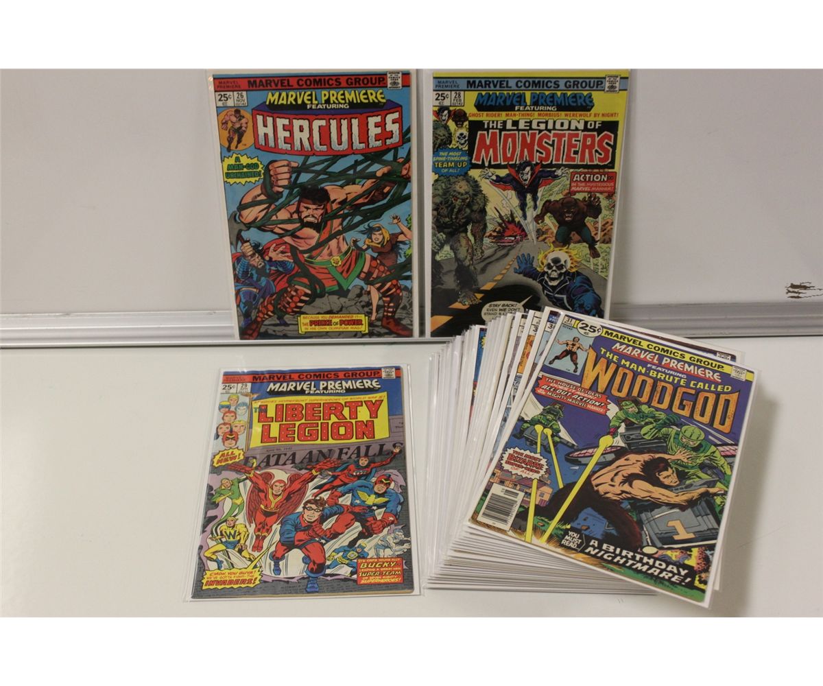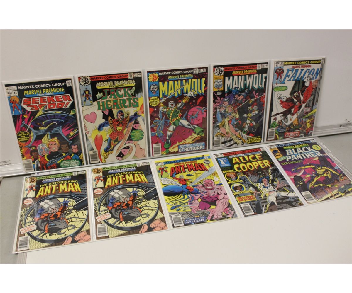MARVEL PREMIERE BRONZE RUN. 30 DIFFERENT ISSUES BETWEEN #26-61 (LAST ISSUE) (1975-81). INCLUDES 2 HIGH GRADE COPIES OF THE RED HOT #42 (1ST APPEARANCE NEW ANT-MAN, 1979)-THE UPCOMING ANT-MAN MOVIE IS BASED ON THIS STORYLINE. MIXED GRADES, MANY HIGHER GRADES.