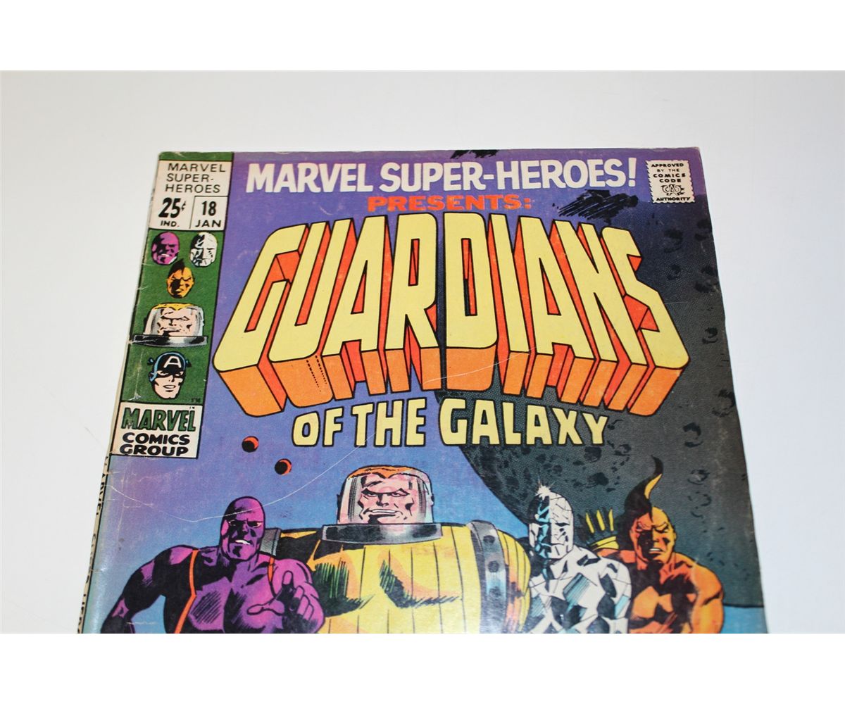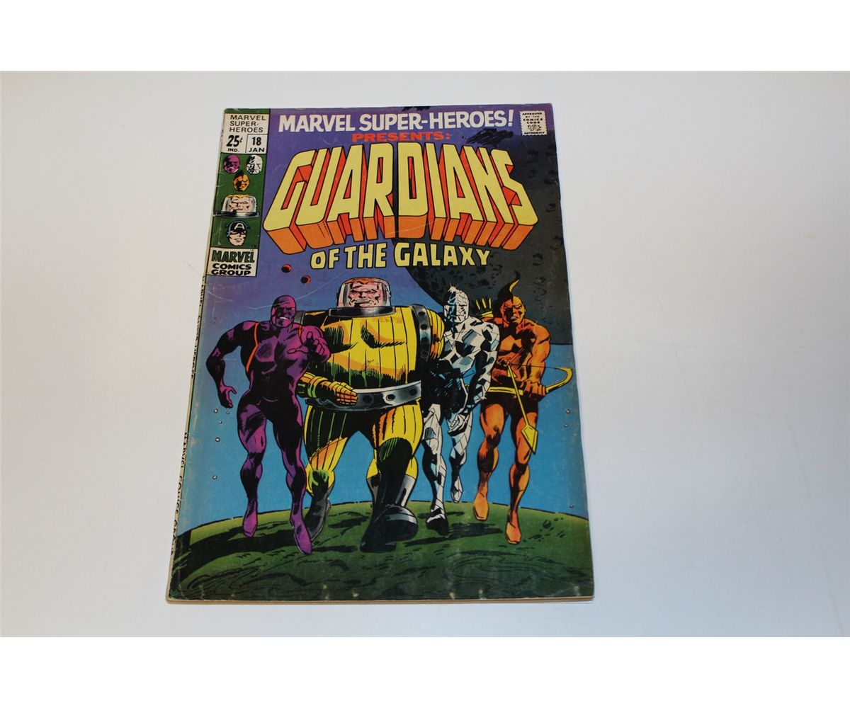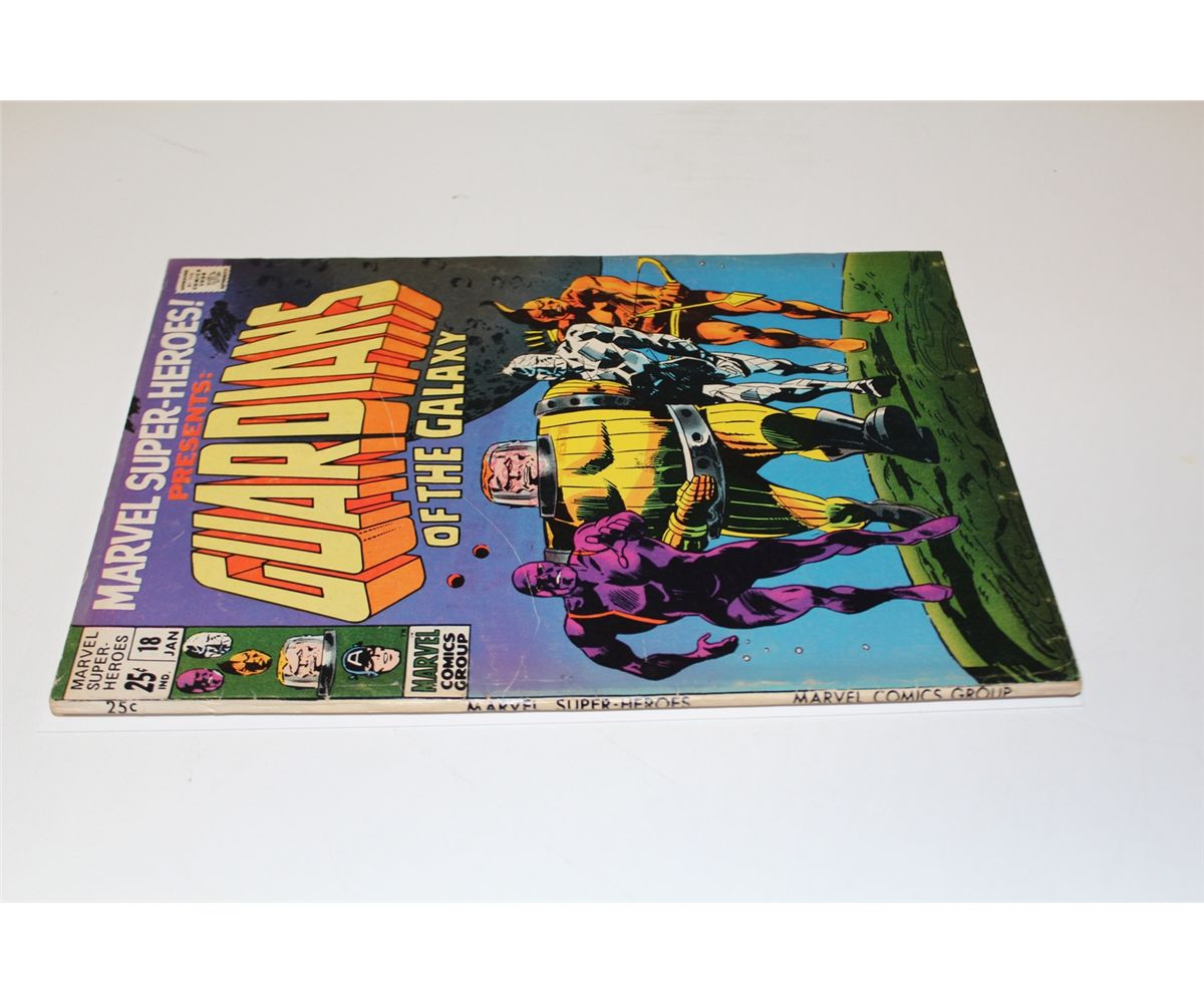 MARVEL SUPER-HEROES #18 (1969) KEY ISSUE- ORIGIN & 1ST APP. GUARDIANS OF THE GALAZY, HOT BOOK- MOVIE COMING THIS SUMMER. LOWER MID TO SOLID MID GRADE COPY, PRESENTS NICE. FLAT, TIGHT & SUPPLE. A NICE KEY!