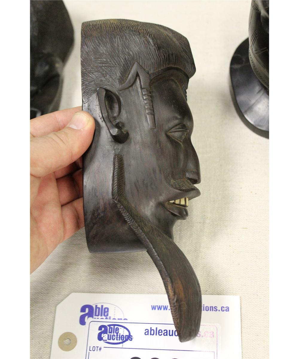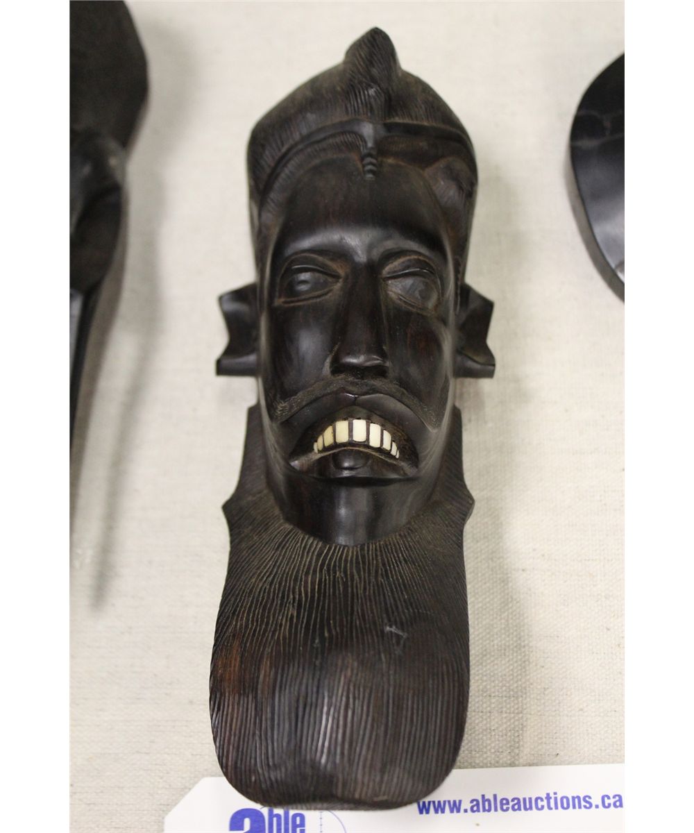 MASAI BUST OF A WARRIOR, BEAUTIFULLY CARVED BLACKWOOD WITH INLAID TEETH 9" HIGH