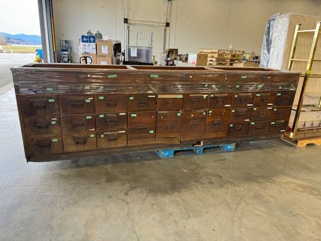 MASSIVE 40 DRAWER GLASS FRONT DISPLAY UNIT 148 X 28 X 42"