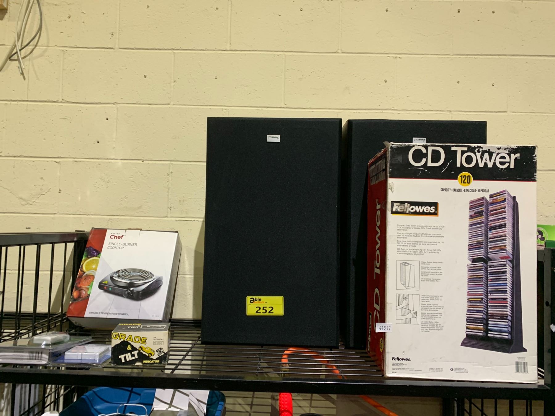 MASTER CHEF SINGLE BURNER COOKTOP, CD TOWER, PAIR OF SANSUI SPEAKERS AND MORE