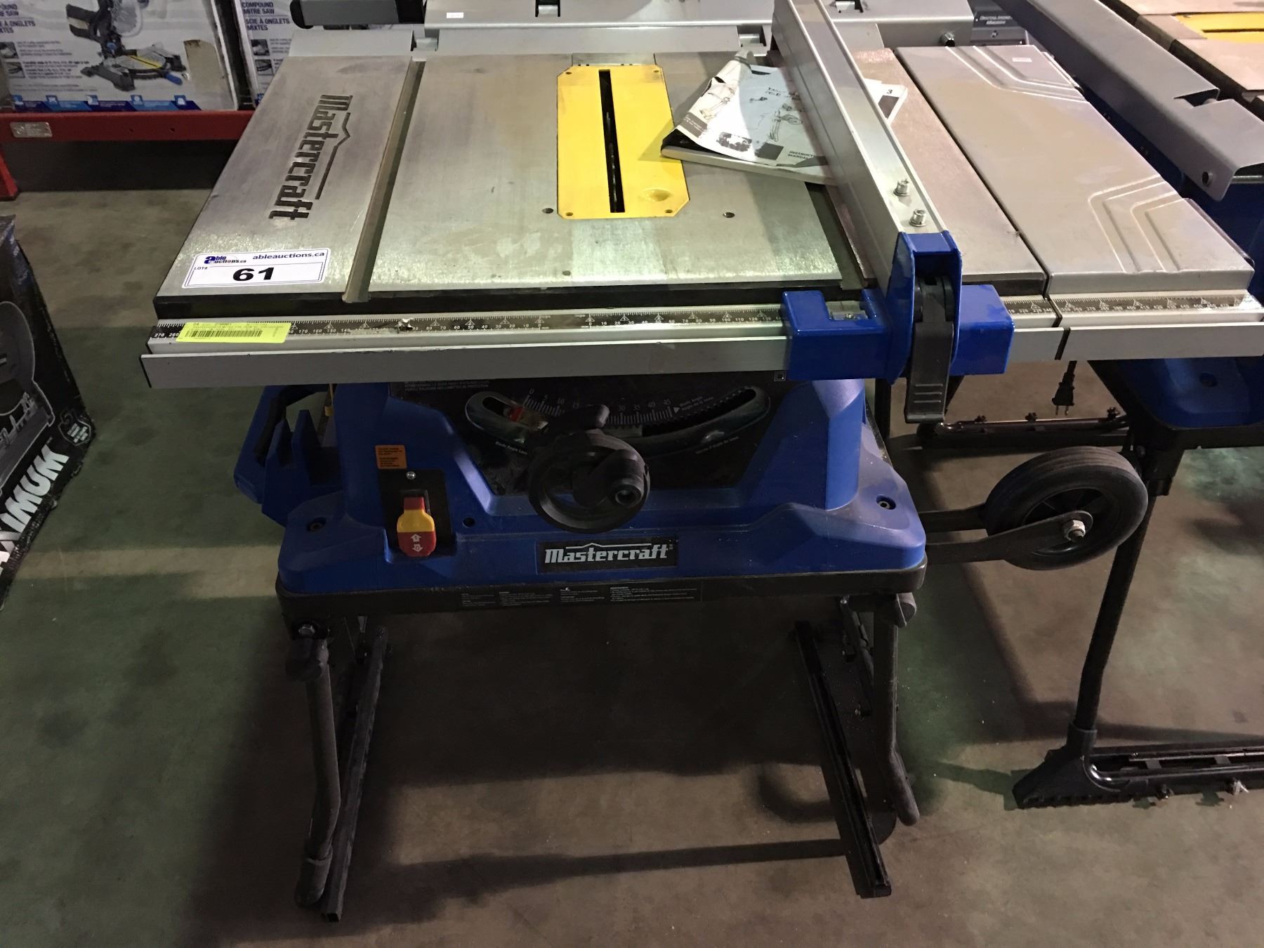 MASTERCRAFT 10"/15 AMP TABLE SAW WITH FOLD & ROLL STAND (SOME ACCESSORIES MISSING)