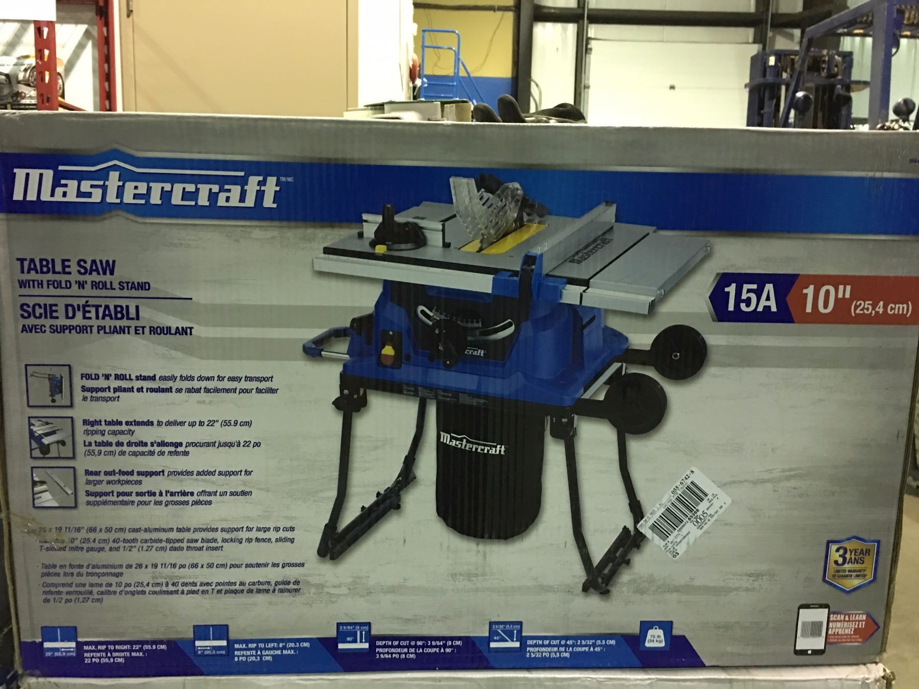 MASTERCRAFT 10" TABLE SAW WITH FOLD & ROLL STAND