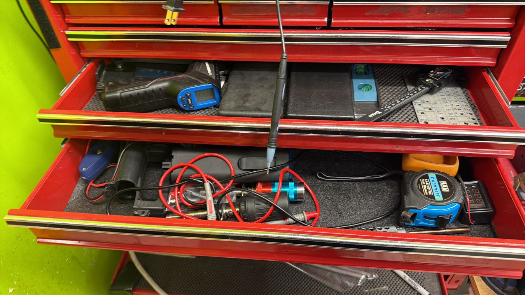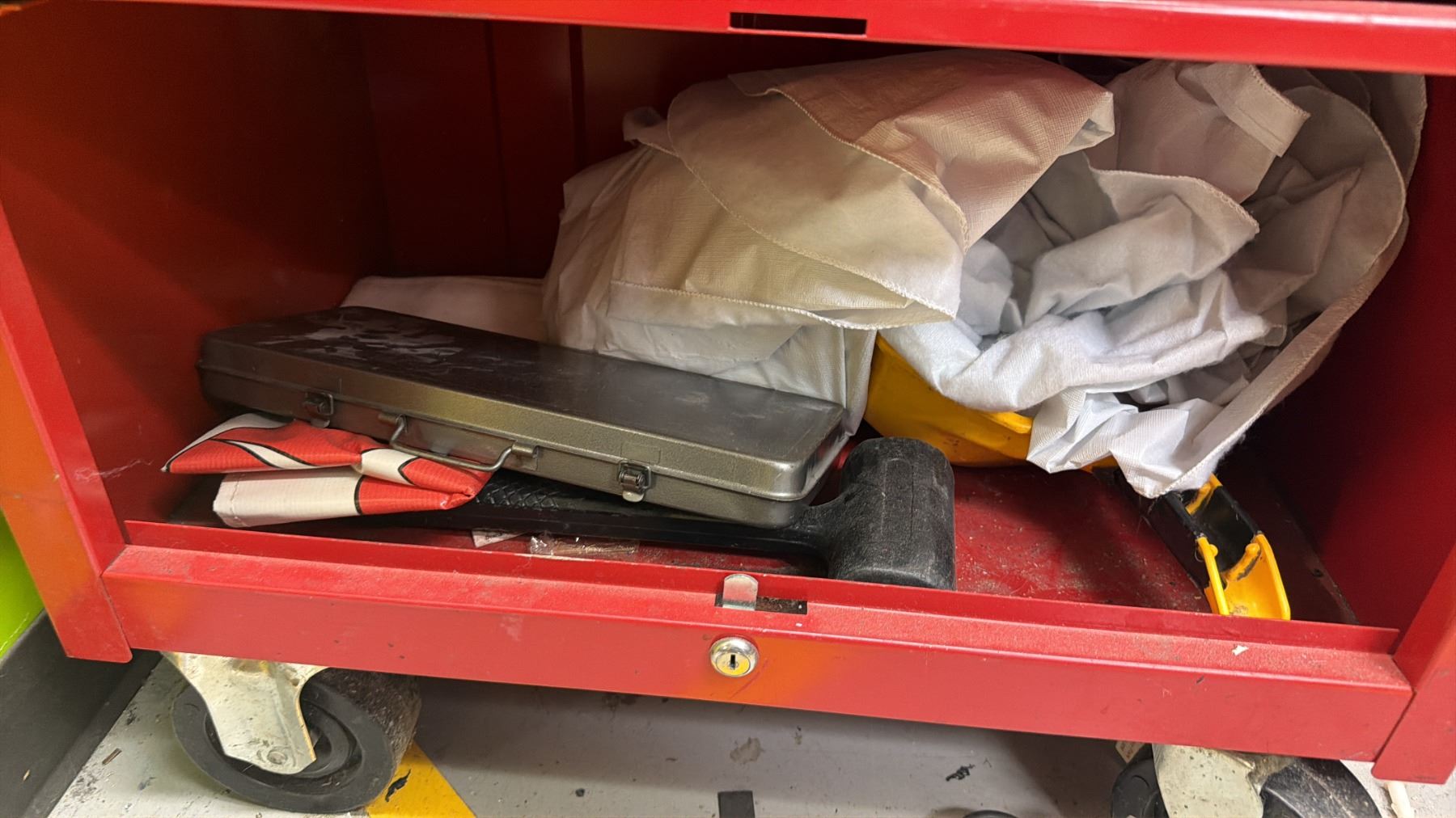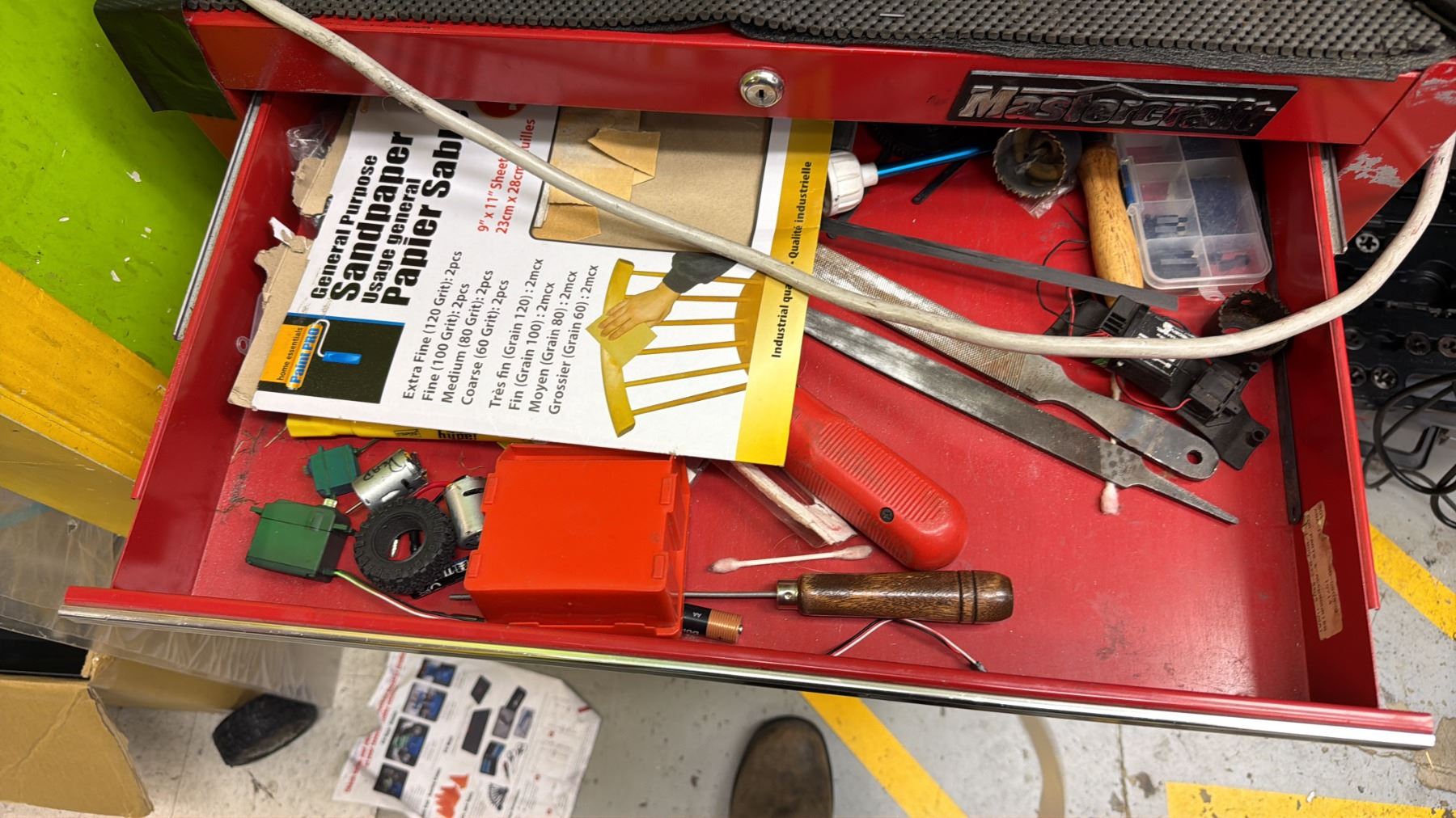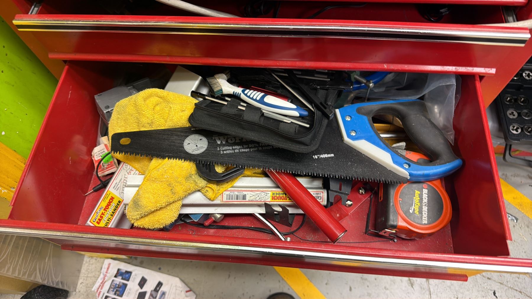 MASTERCRAFT 3-PC PORTABLE TOOLBOX WITH CONTENTS INCLUDING; RYOBI AIR COMPRESSOR, VACUUM & CHARGER