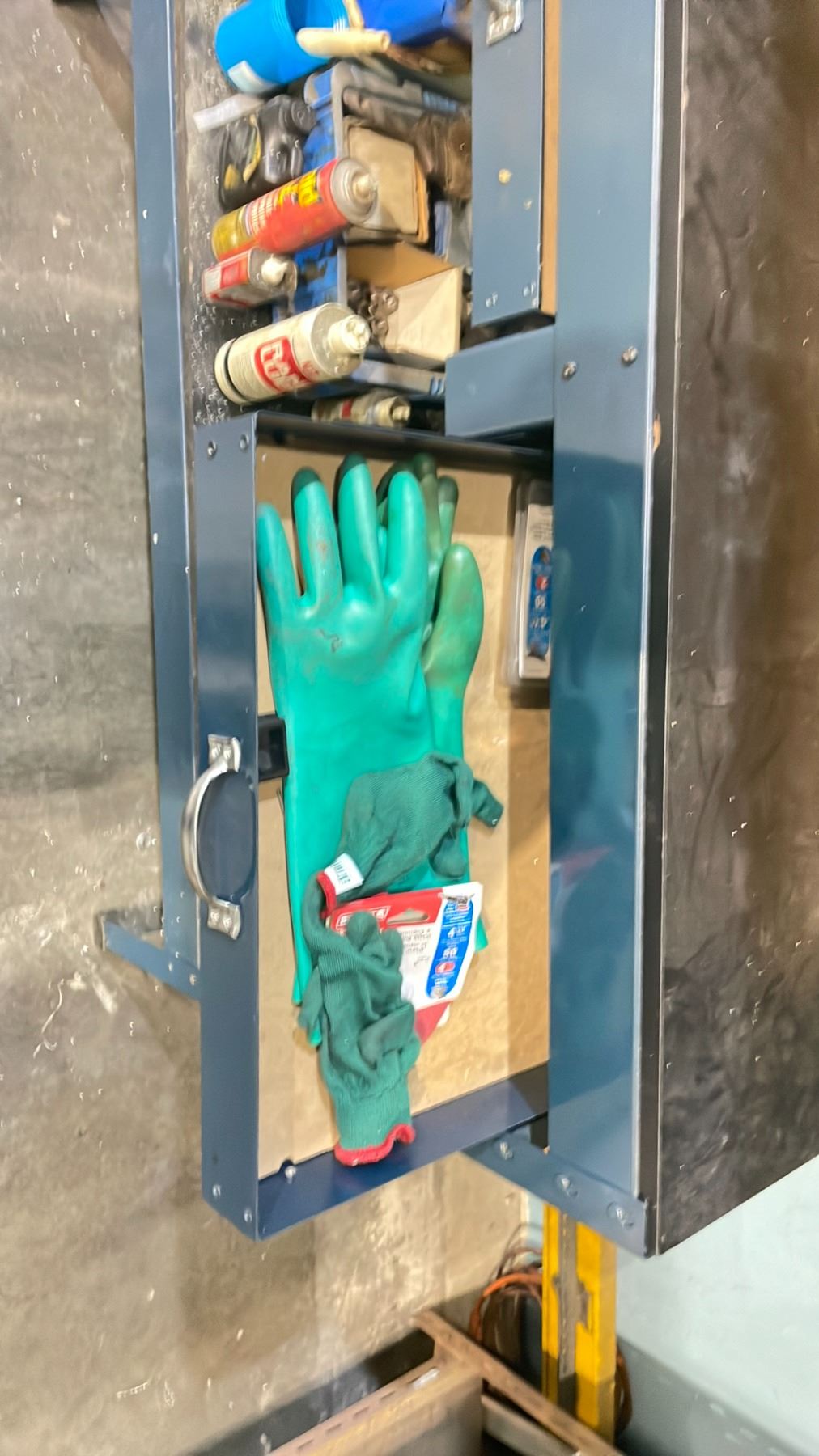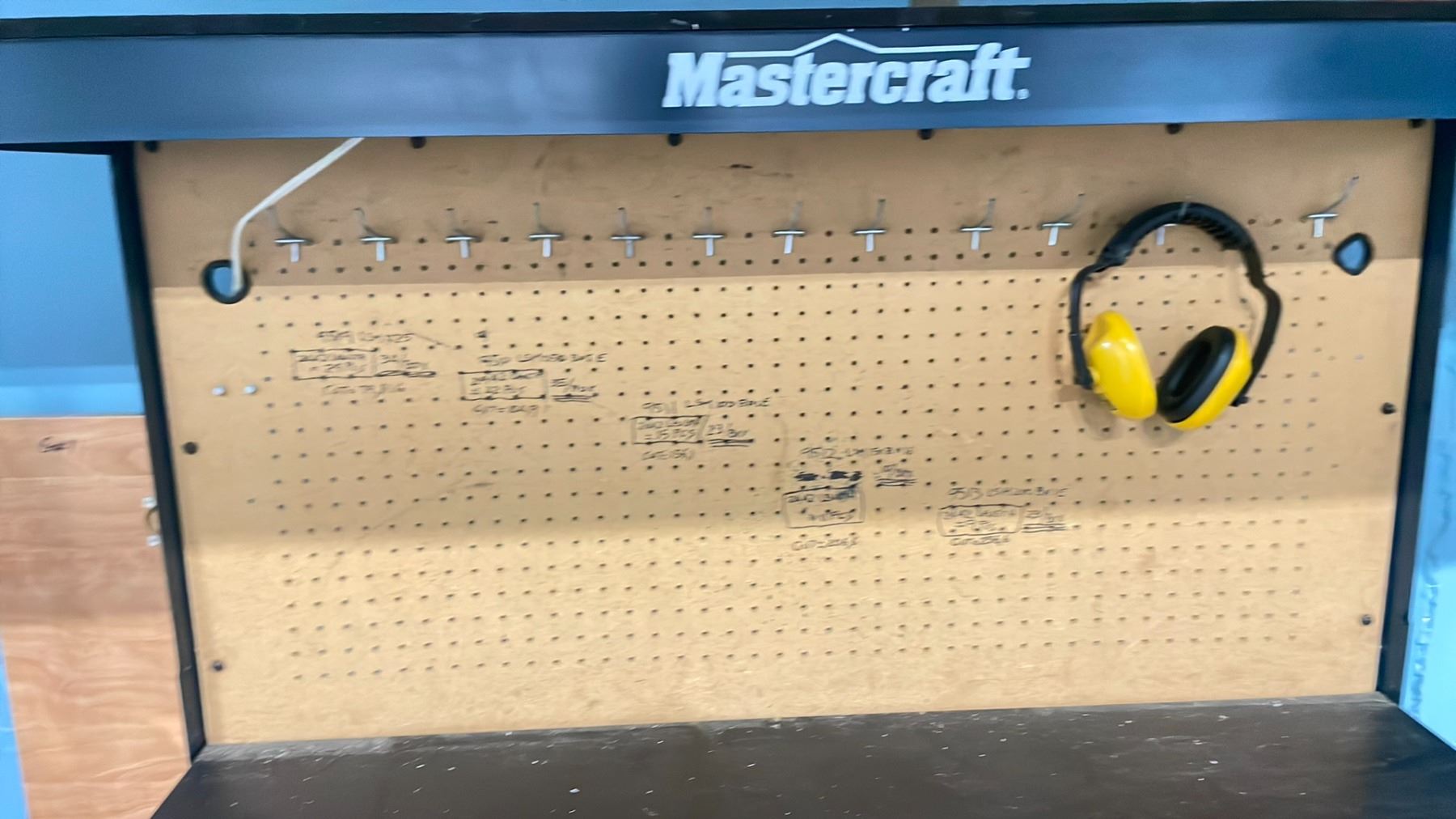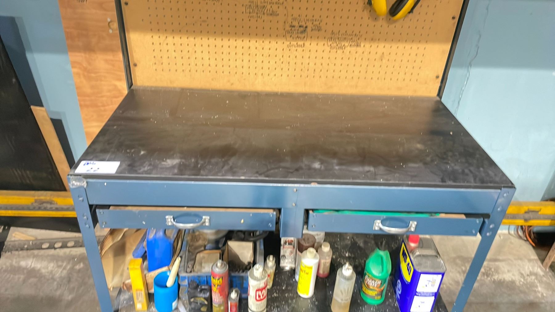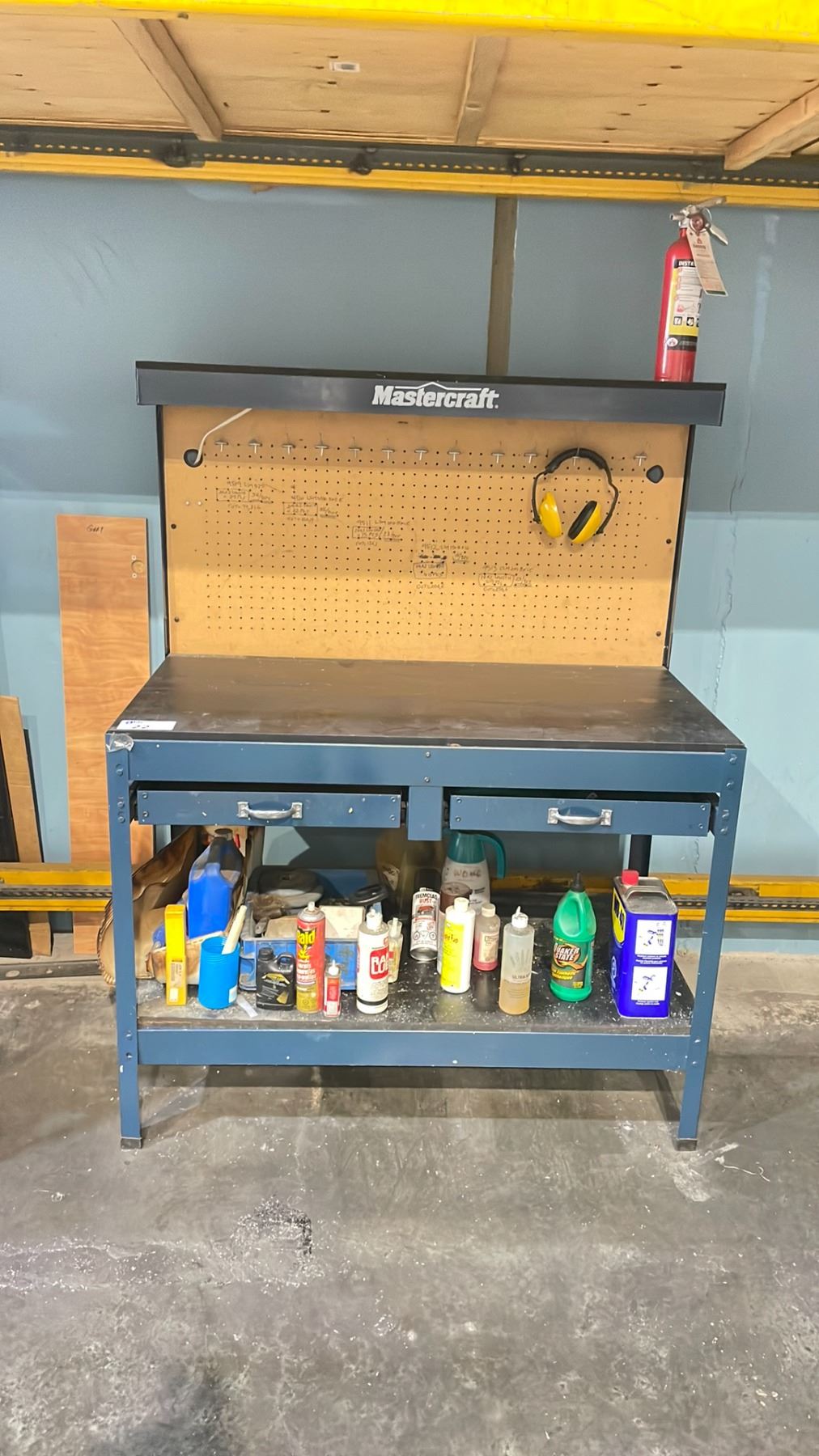 MASTERCRAFT BLUE METAL 2 DRAWER 48"W X 24"D X 36"H INDUSTRIAL WORKBENCH WITH PEGBOARD BACK SHELF