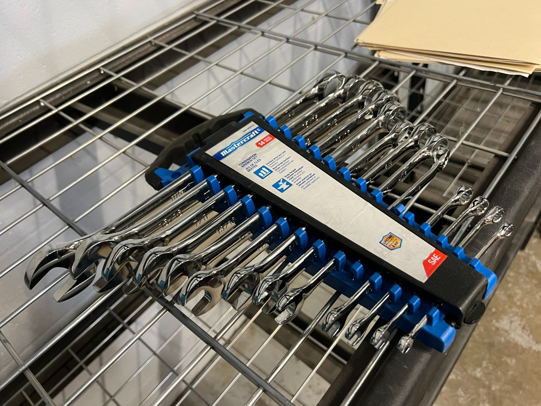 MASTERCRAFT COMBINATION WRENCH SET. 1/4"-1". MISSING A 7/16"