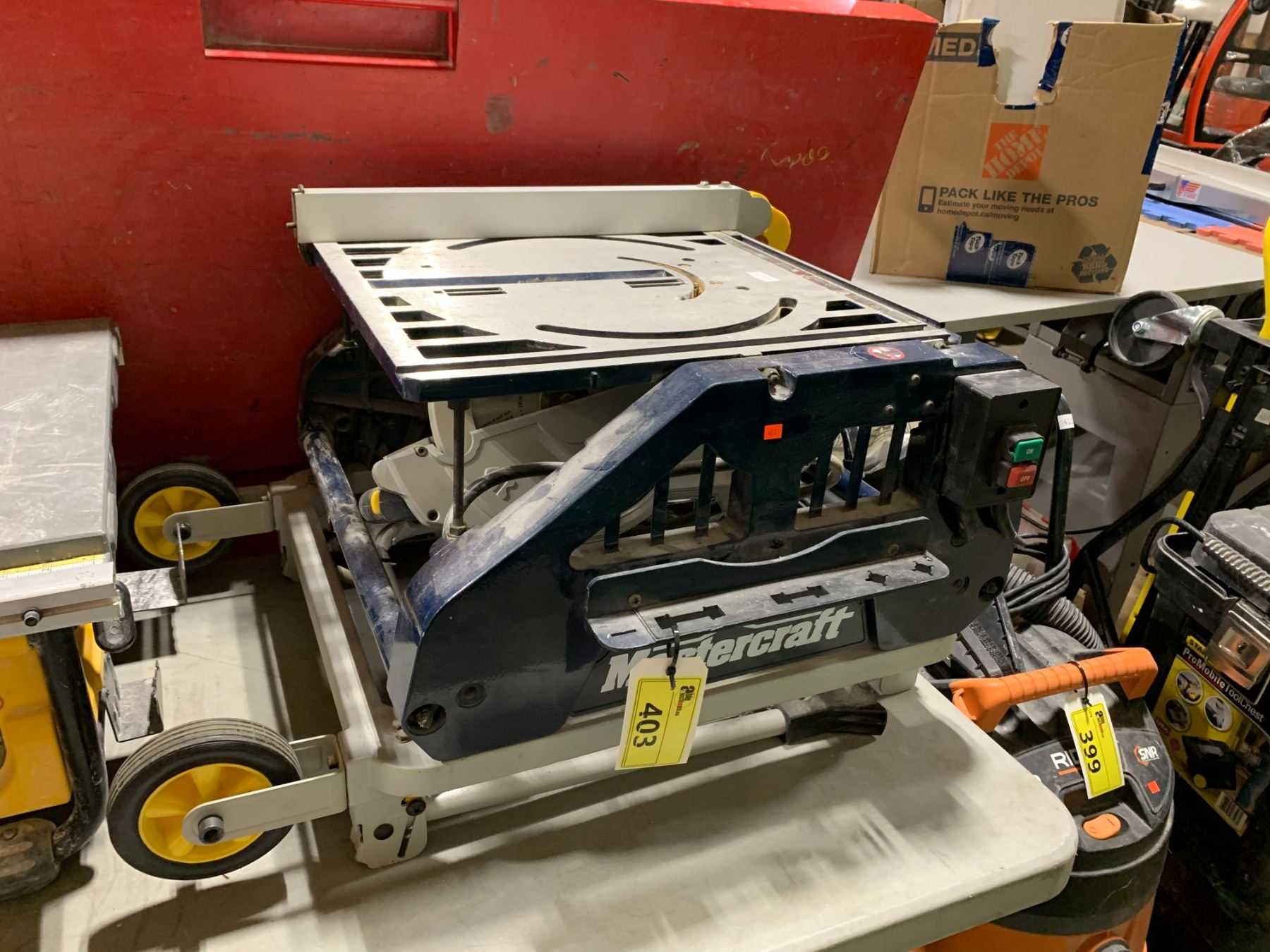 MASTERCRAFT ELECTRIC INDUSTRIAL MULTI TABLE SAW / CHOP SAW ON FOLDING MOBILE STAND