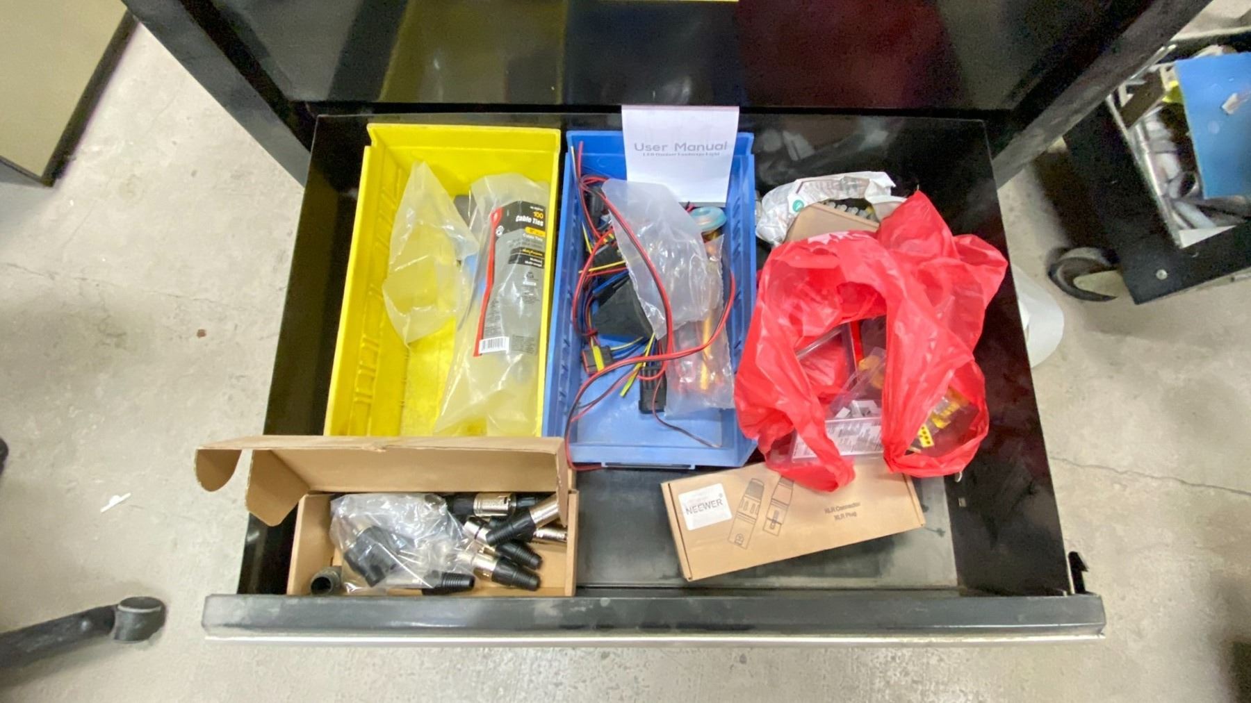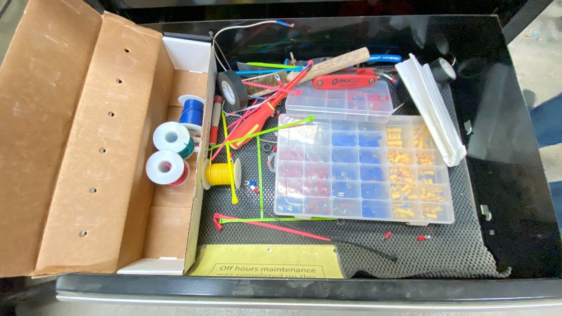 MASTERCRAFT MAXIMUM TOOLBOX WITH CONTENTS. 25" WIDE. HAS POP UP PEGBOARD, ELECTRICAL SUPPLIES, ETC LOCATED IN MAINTENANCE OFFICE