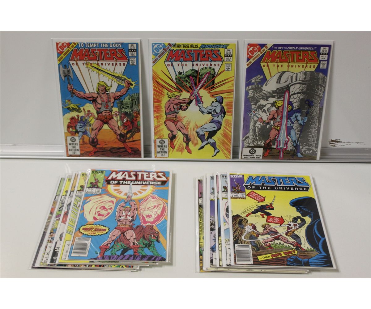 MASTERS OF THE UNIVERSE (DC & MARVEL) ENTIRE SERIES.  #1-3 (DC) 1982-83, #1-13 (MARVEL) 1986-88.  NICE & SHARP RUN, HARD TO COMPLETE, LOW PRINT.