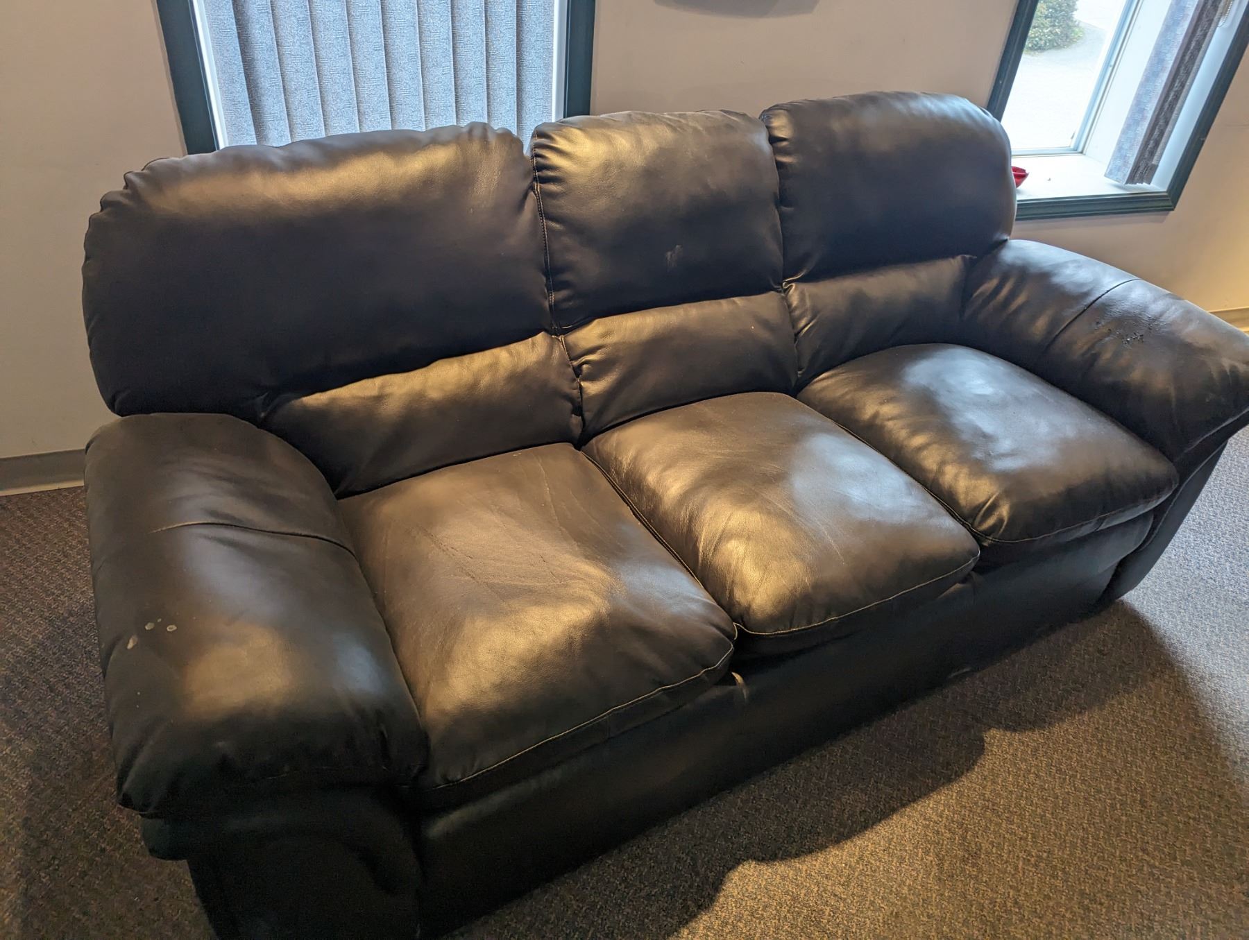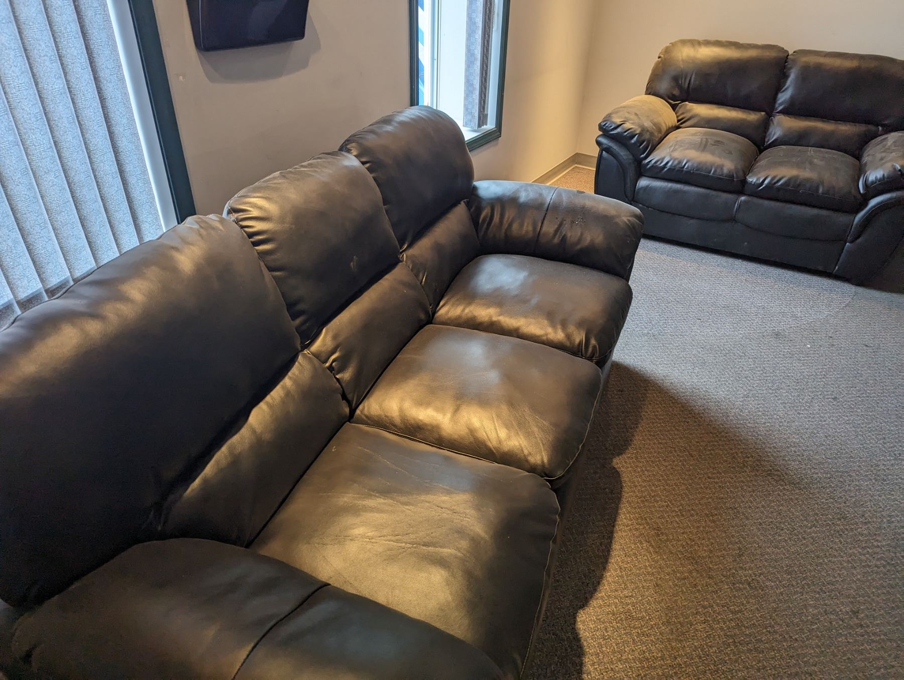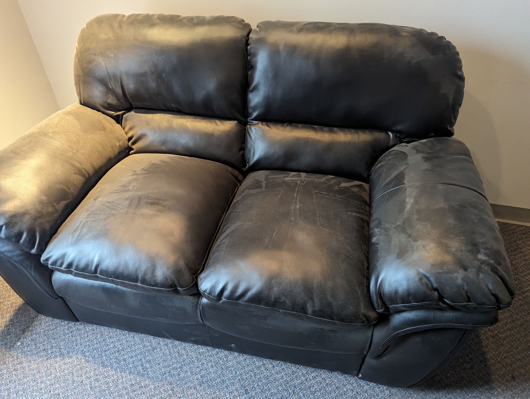 MATCHING SOFA AND LOVESEAT-BLACK. SMALL AMOUNT OF WEAR ON ONE ARM