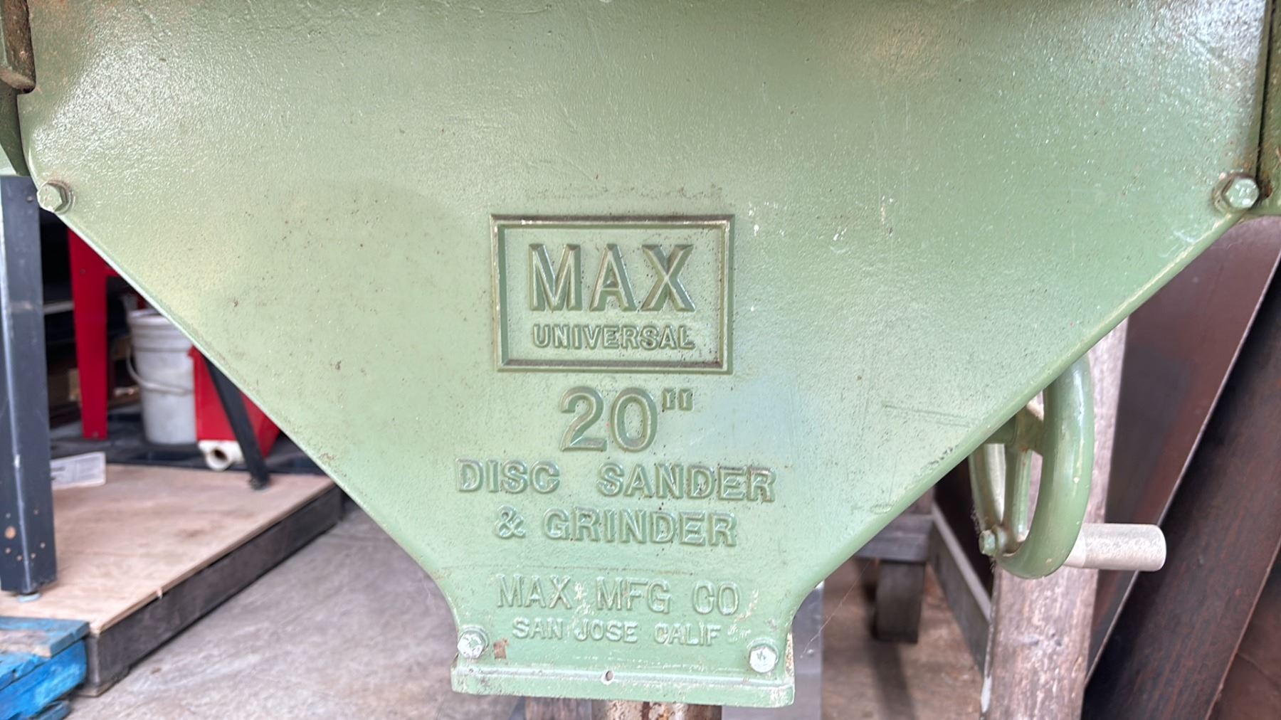 MAX UNIVERSAL 20" 3 PHASE 220V DISC SANDER & GRINDER ON A STEEL BASE WITH EXTRA SANDING DISCS