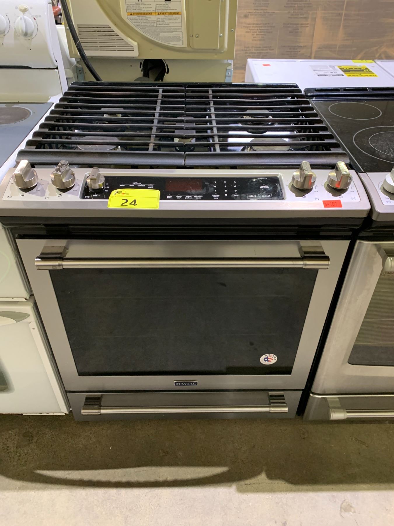 MAYTAG STAINLESS STEEL 5 BURNER GAS TOP STOVE WITH CONVECTION OVEN