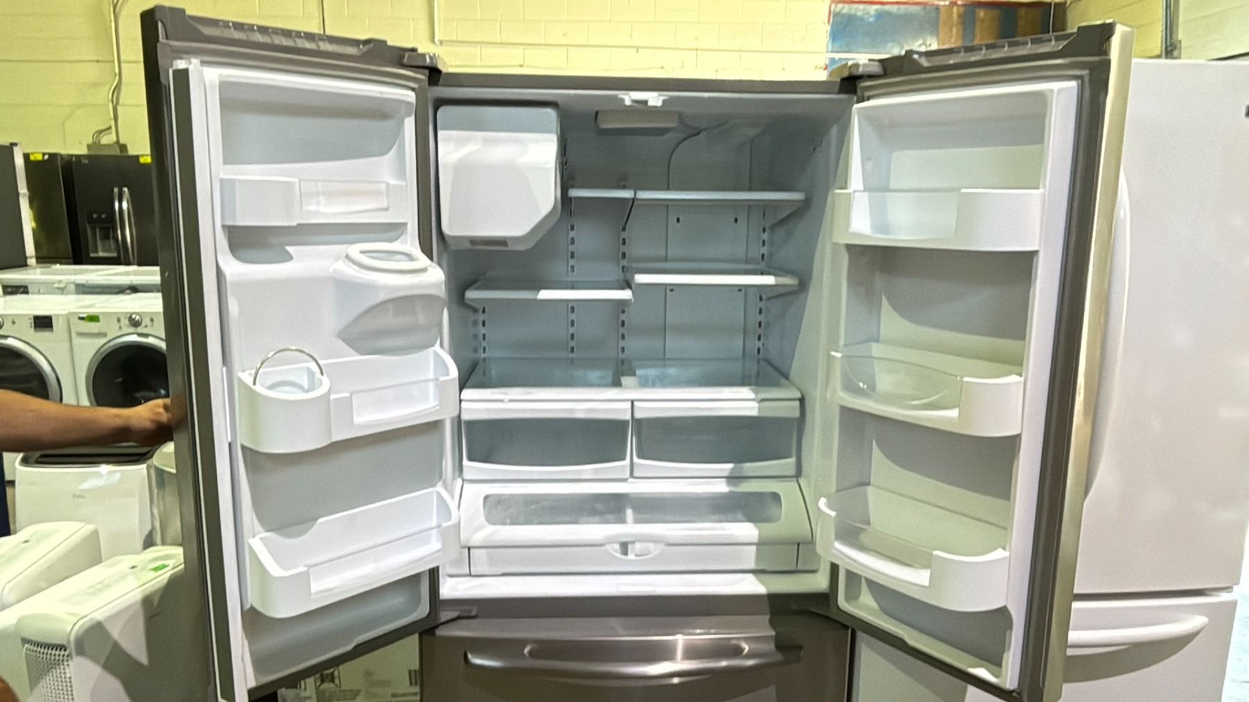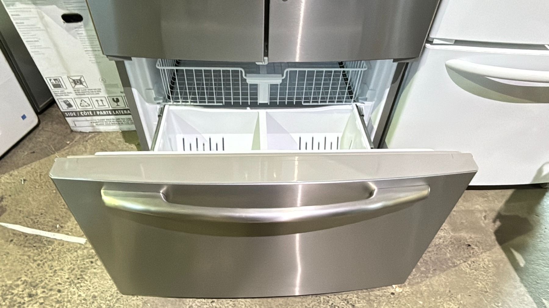 MAYTAG STAINLESS STEEL FRENCH DOOR FRIDGE WITH ROLLOUT FREEZER & WATER/ICE DISPENSER 35.5" WIDE