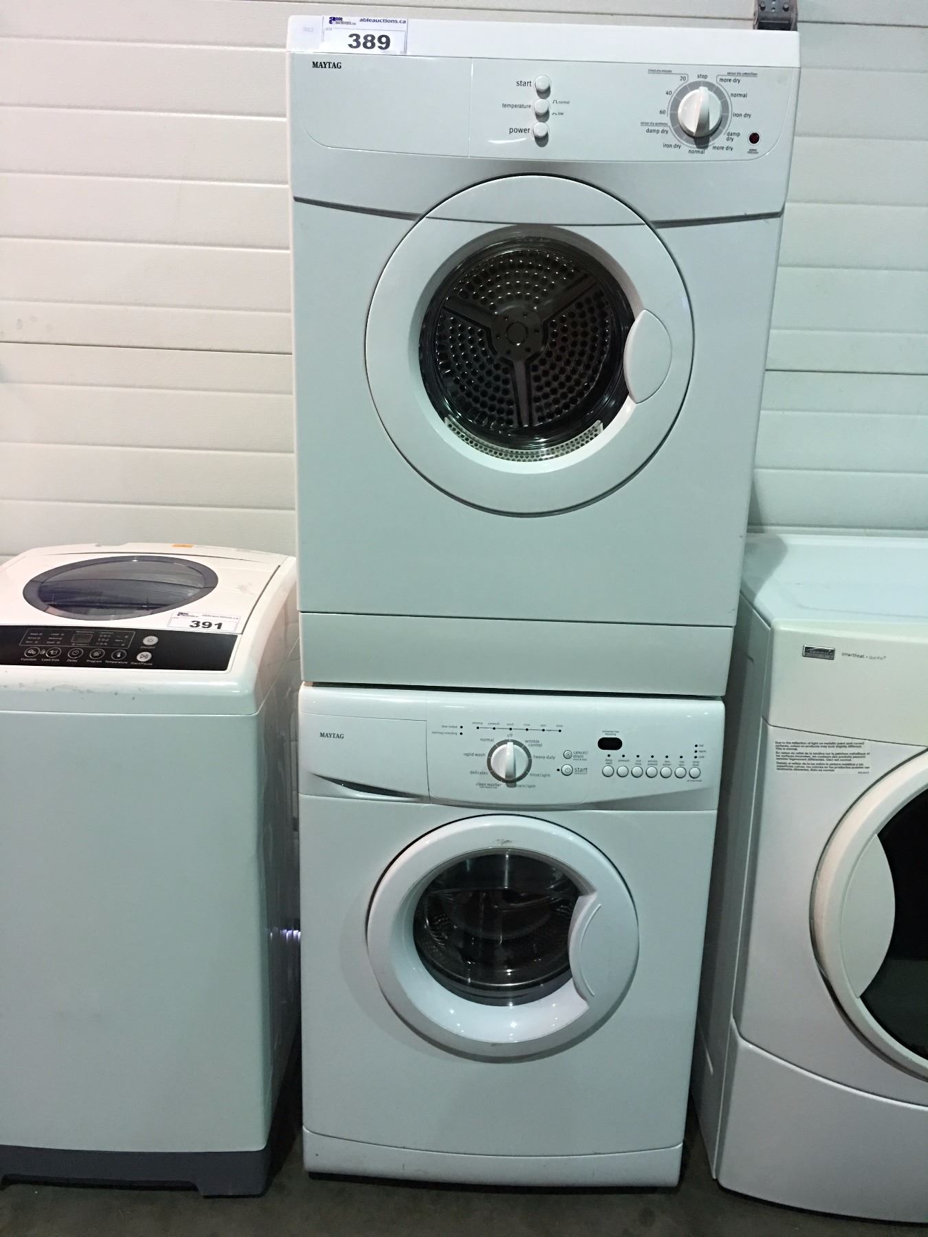 MAYTAG WHITE STACKER WASHER & DRYER SET (MINOR SCRATCHES & DENTS MAY BE PRESENT)