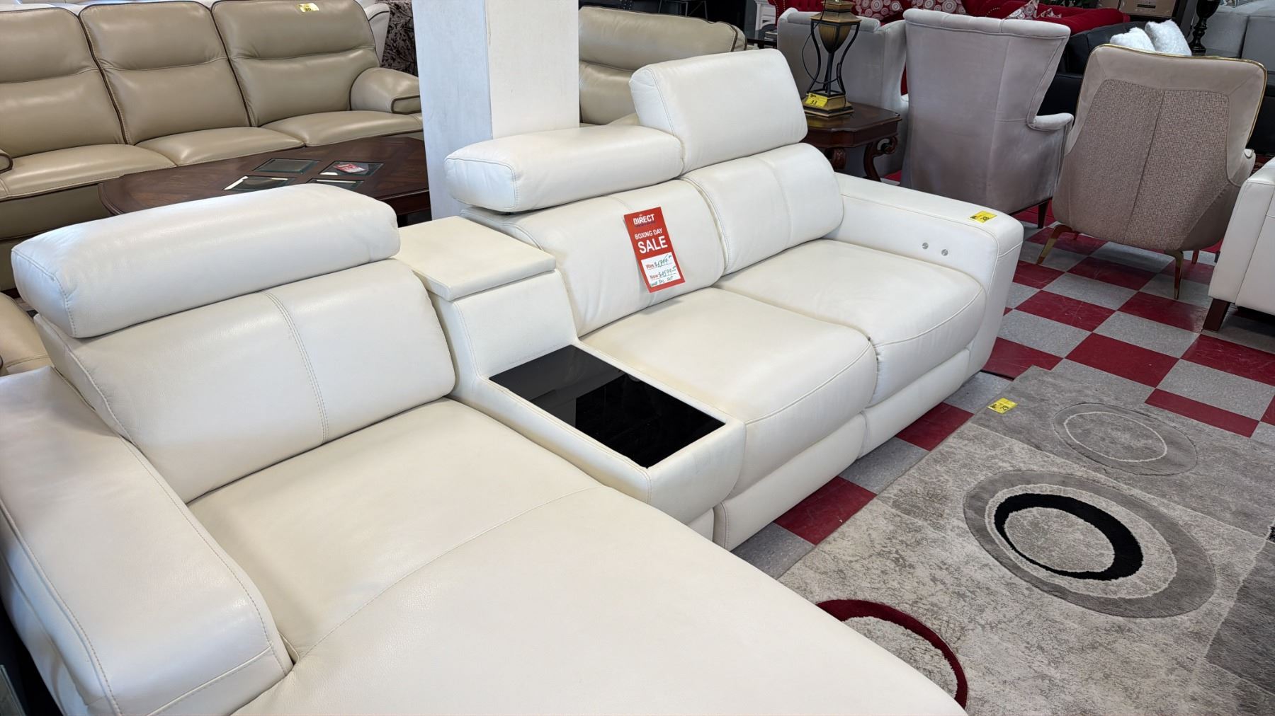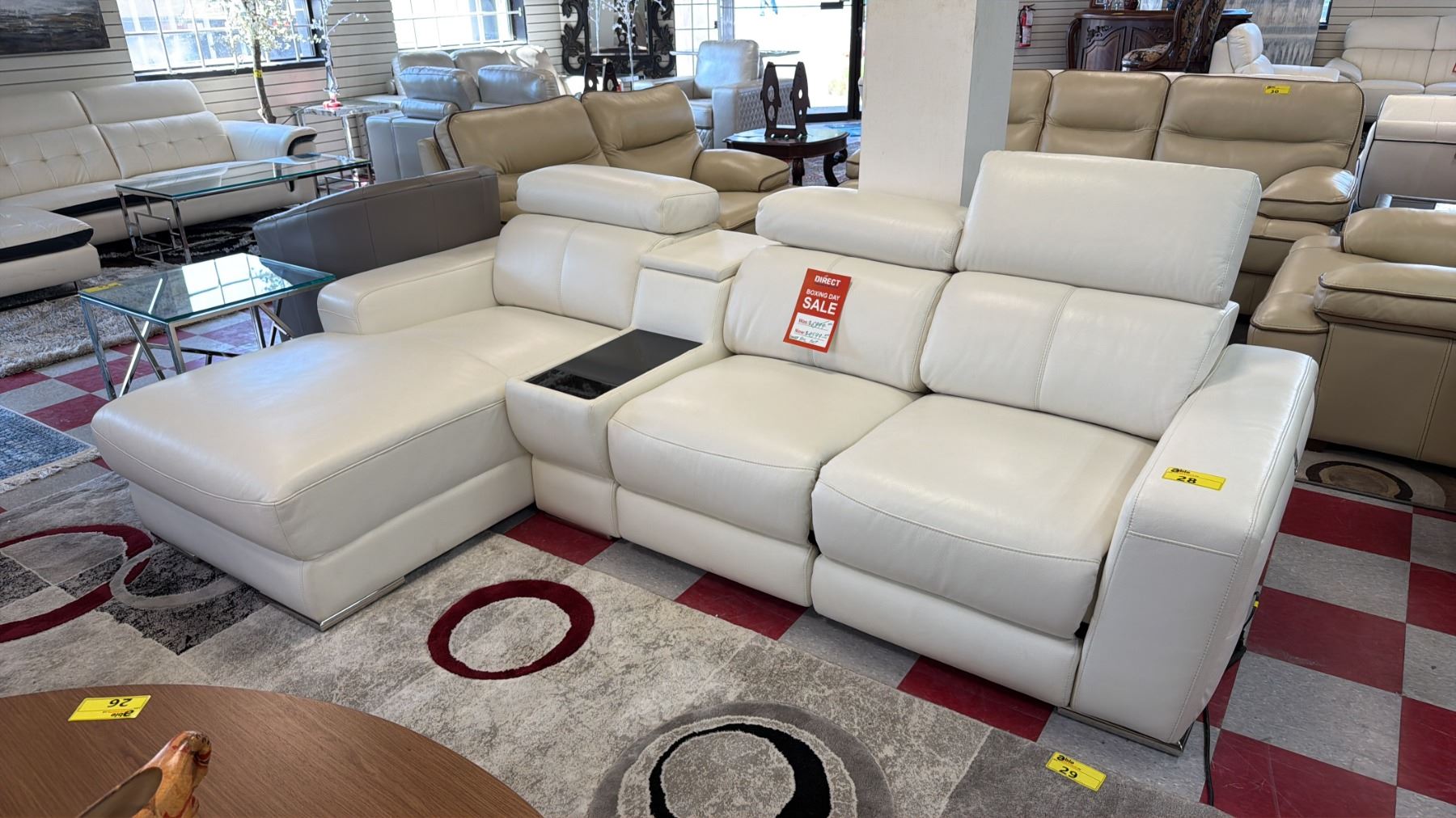 MAZARIAN 4-PC LEATHER SECTIONAL SOFA WITH CHAISE. ELECTRIC RECLINER & ADJUSTABLE HEADRESTS