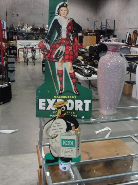 MCDONALDS EXPORT CIGARETTES CARDBOARD SIGN AND COOL MILD MENTHOL CIGARETTES PENGUIN CARDBOARD SIGN