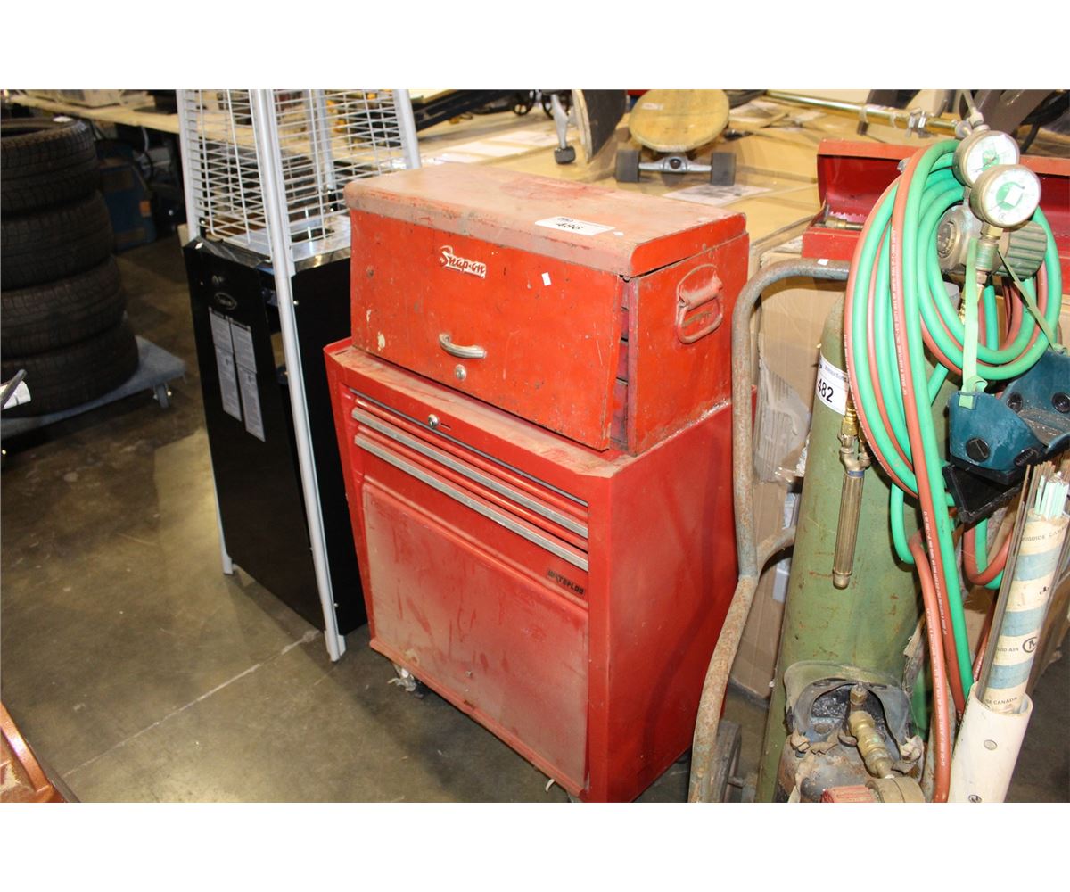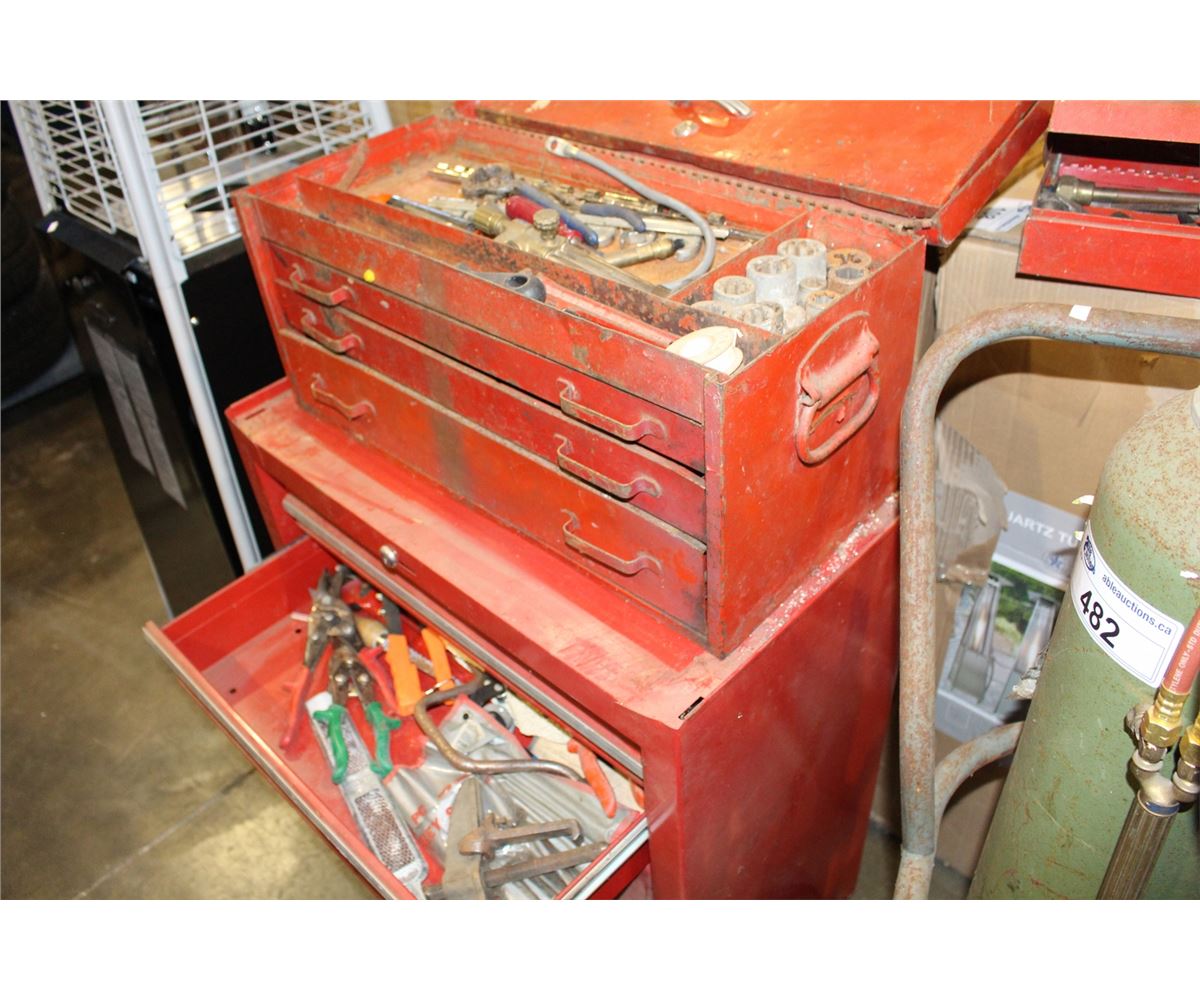 MECHANICS 2PC TOOL CHEST; WATERLOO BOTTOM, SNAP ON TOP, COMPLETE WITH ASSORTMENT OF TOOLS