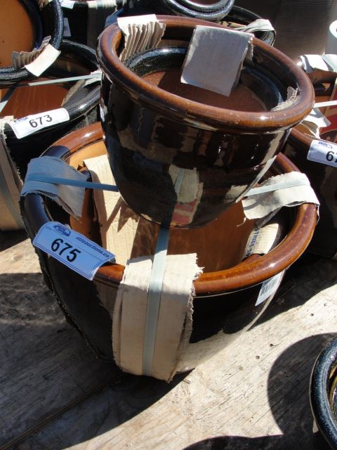 MEDIUM 2TONE BEIGE AND GREY 4PC CERAMIC PLANTER SET