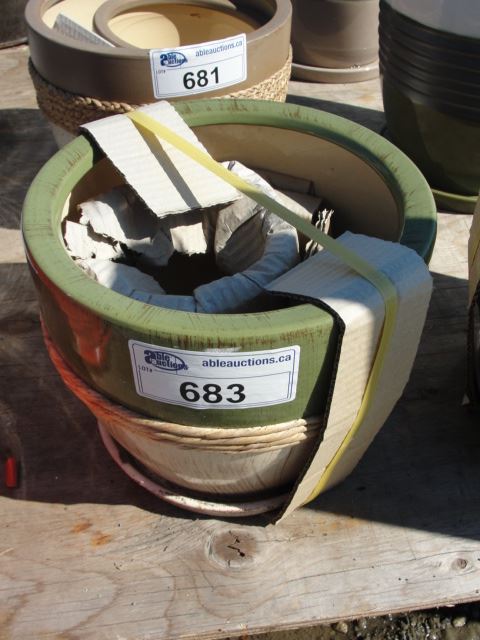 MEDIUM 2TONE GREEN AND WHITE WITH ROPE CORD DECORATIVE ACCENT 2PC CERAMIC PLANTER SET