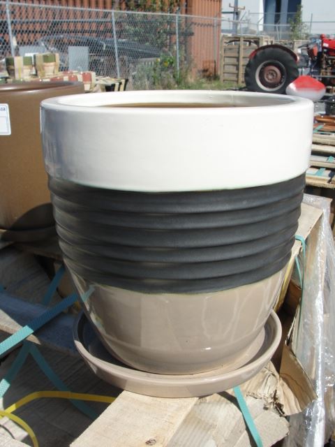 MEDIUM 3 TONE BEIGE BROWN AND WHITE SINGLE CERAMIC PLANTER