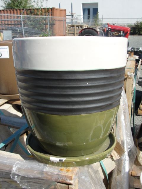 MEDIUM 3 TONE GREEN BROWN AND WHITE SINGLE CERAMIC PLANTER